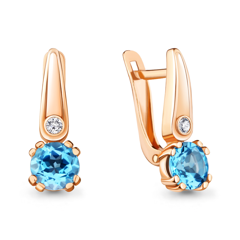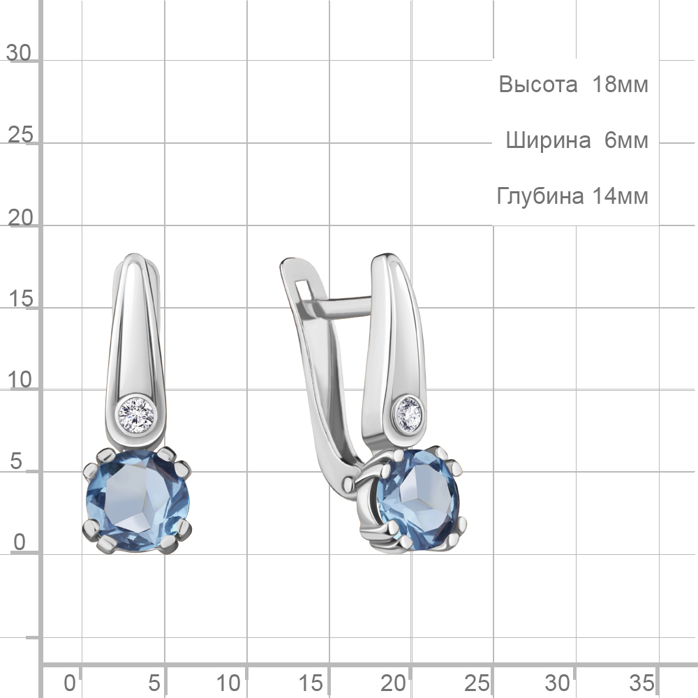 4731605А Серьги из Серебра с топазами свисс блю, фианитами