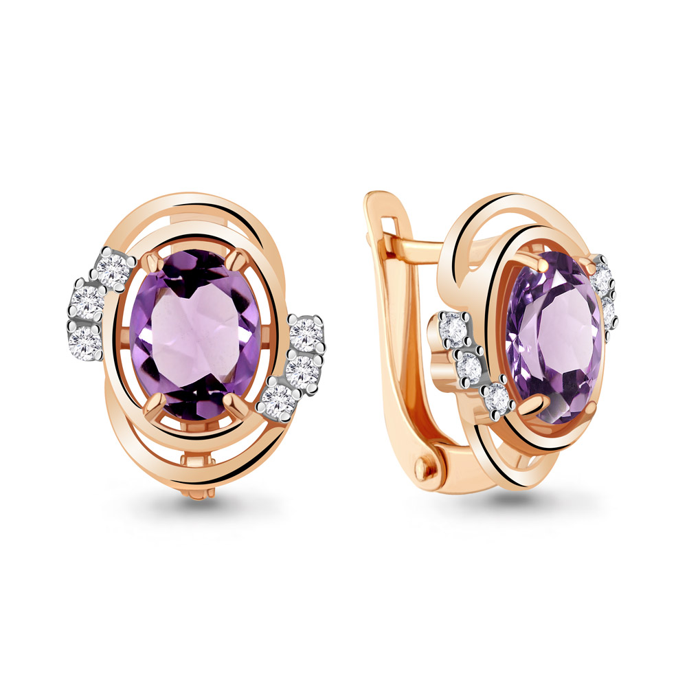4741204А Серьги из Серебра с аметистами, фианитами