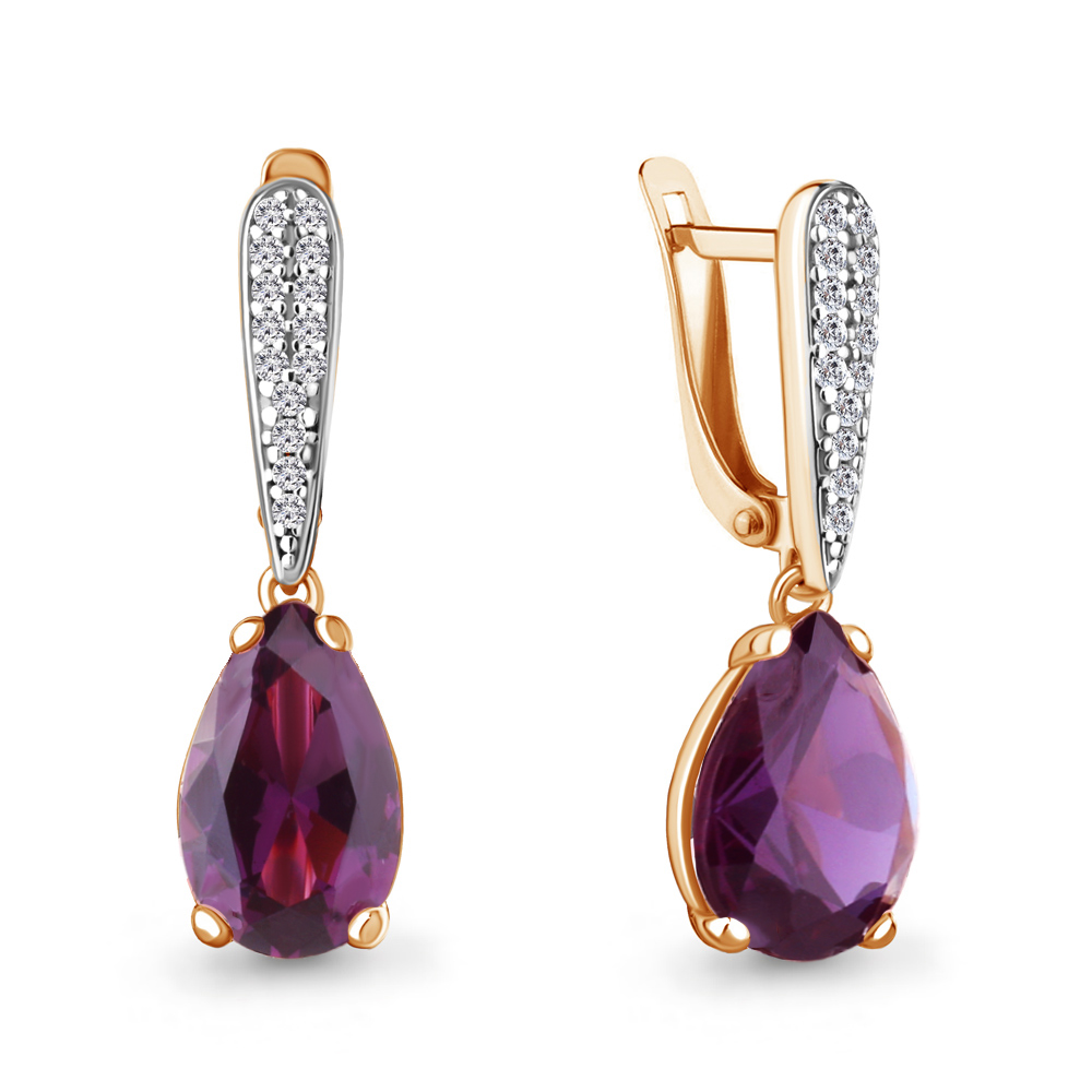 4749984А Серьги из Серебра с наноаметистами иск., фианитами