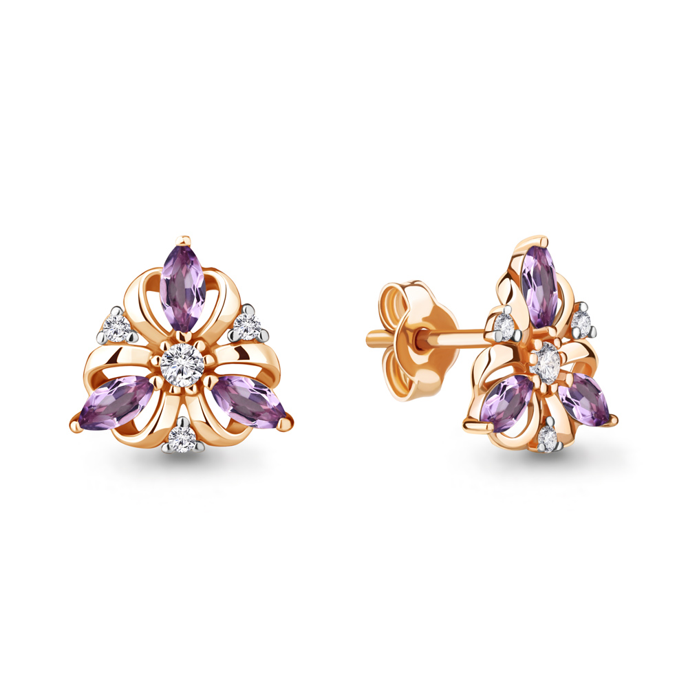 4752204А Серьги из Серебра с аметистами, фианитами