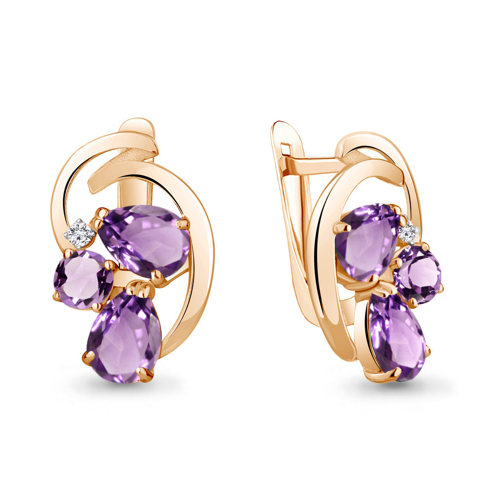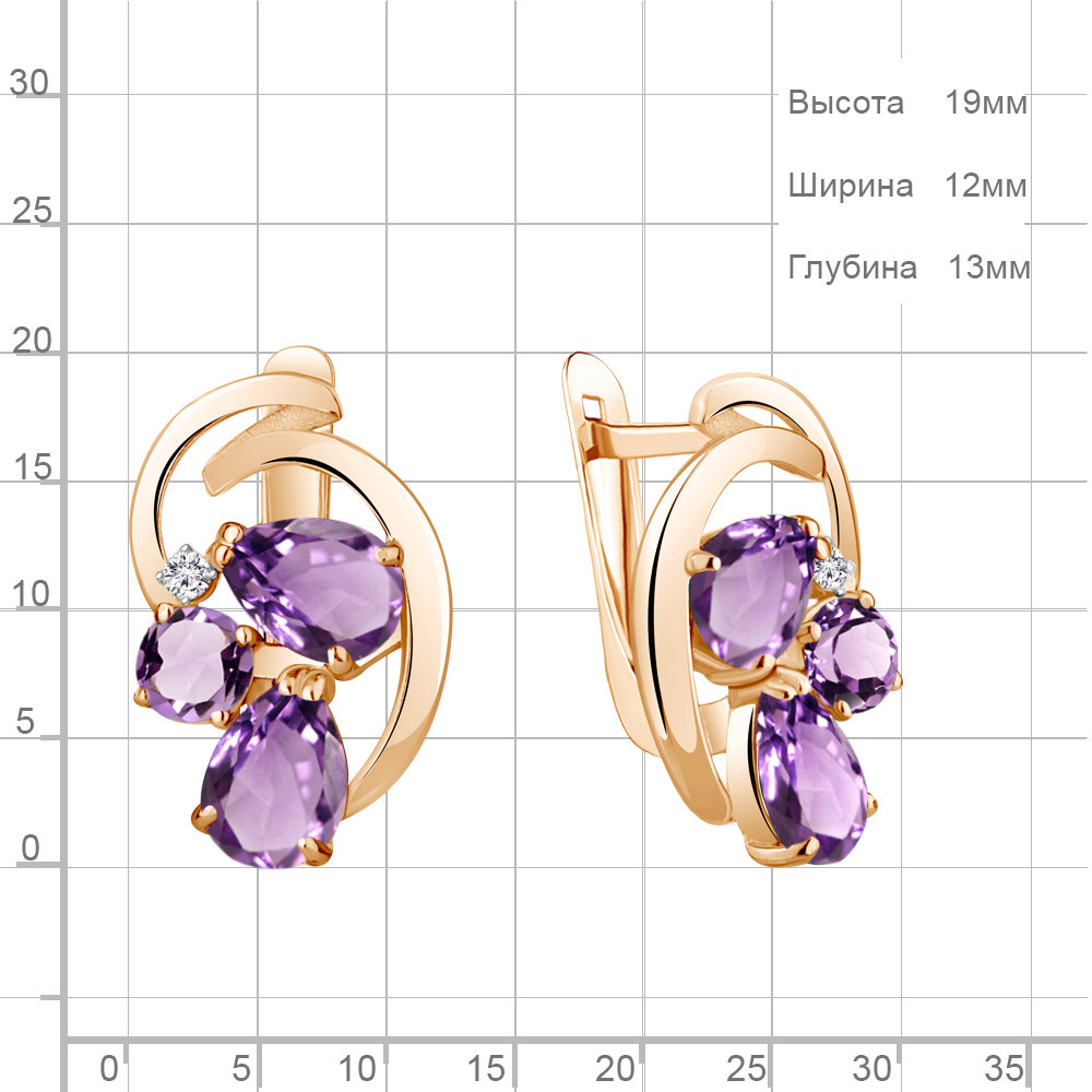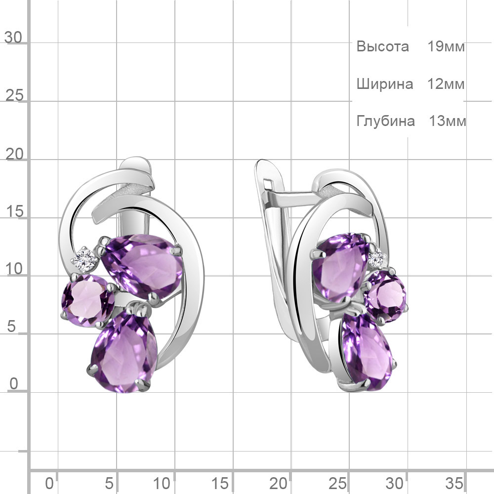 4761704А Серьги из Серебра с аметистами, фианитами