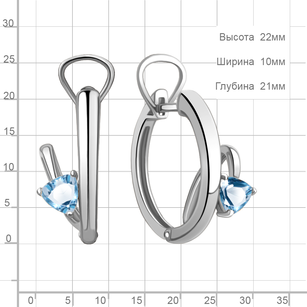 4763905 Серьги из Серебра с топазами свисс блю