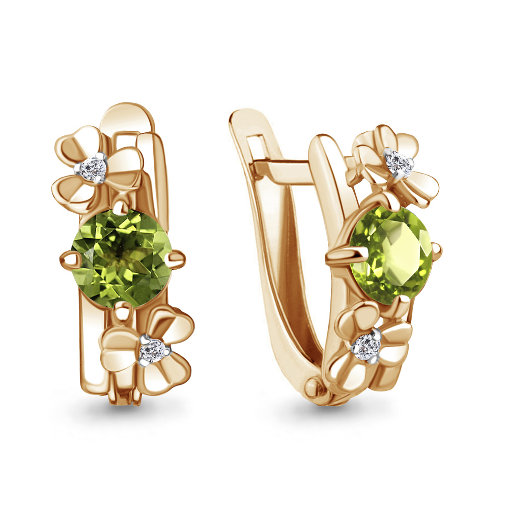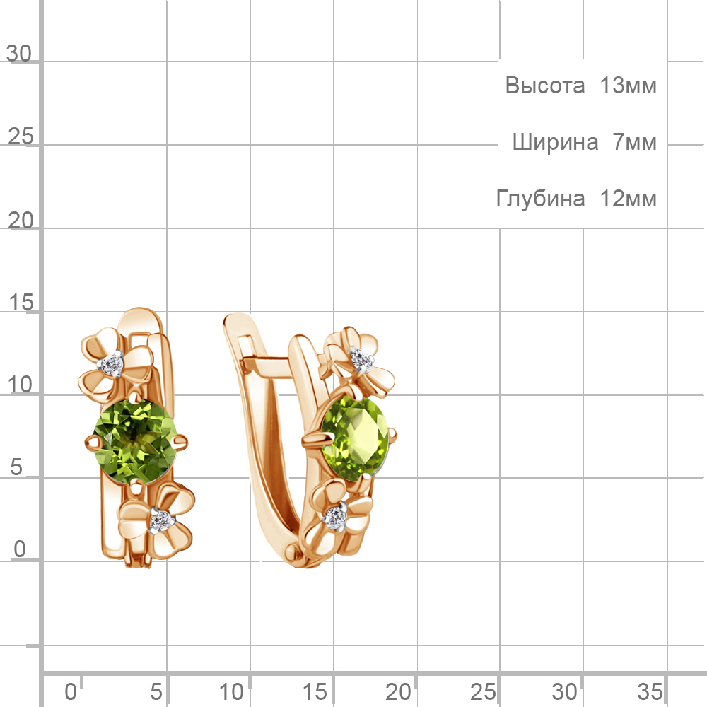 4765107А Серьги из Серебра с фианитами, хризолитами