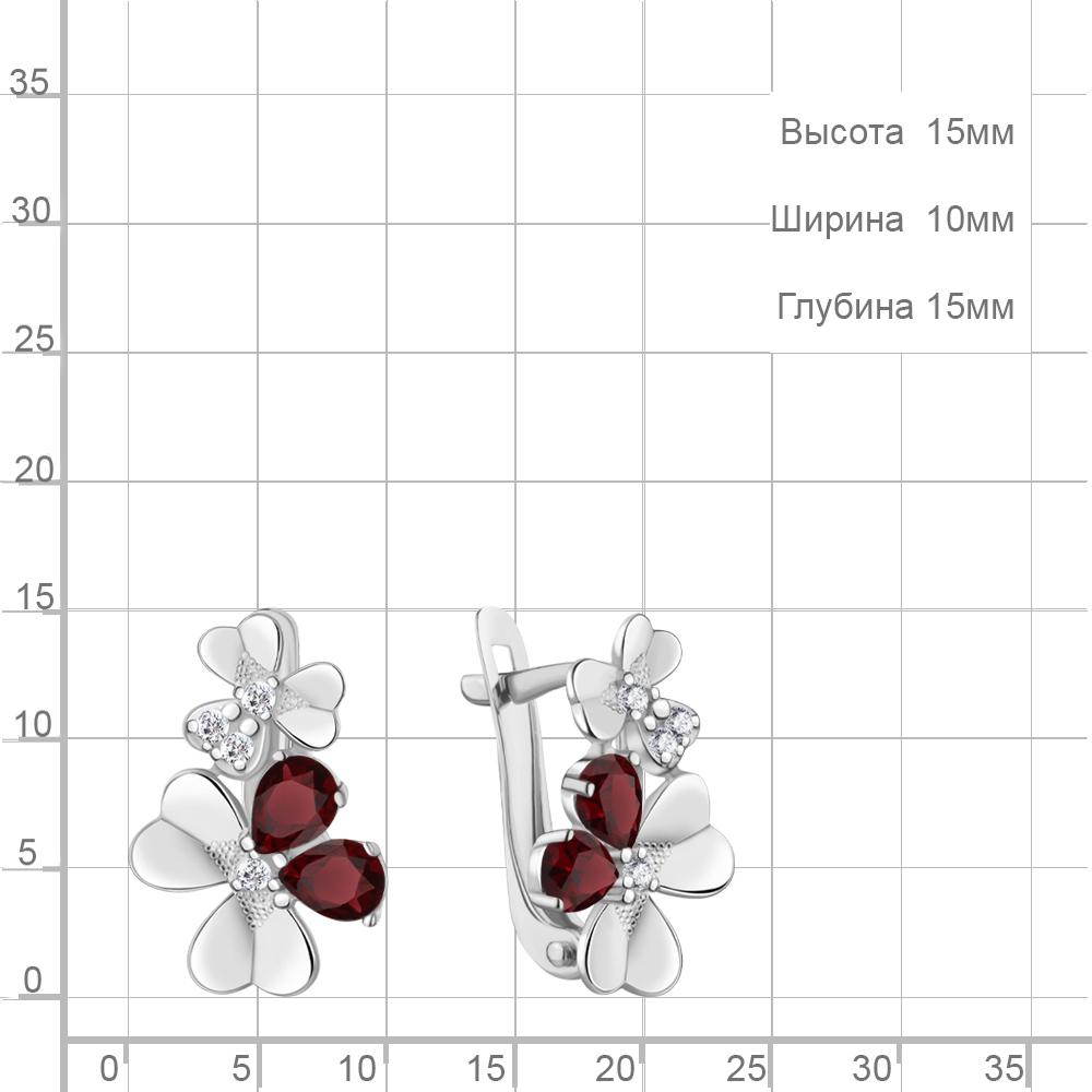 4765203А Серьги из Серебра с гранатами, фианитами