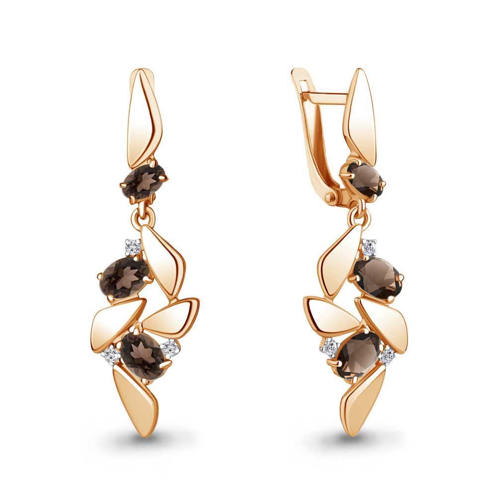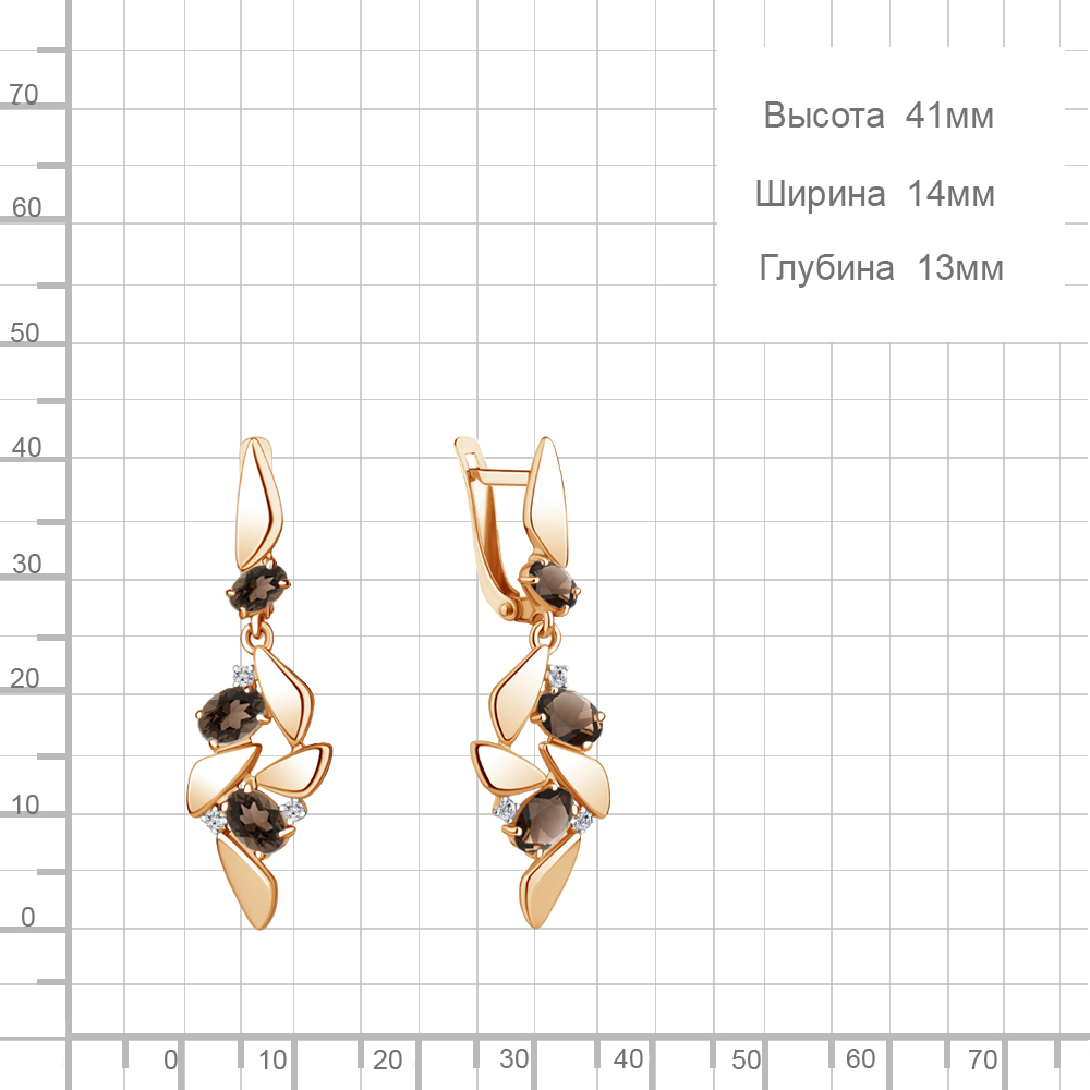 4766401А Серьги из Серебра с кварцами дымчатыми, фианитами