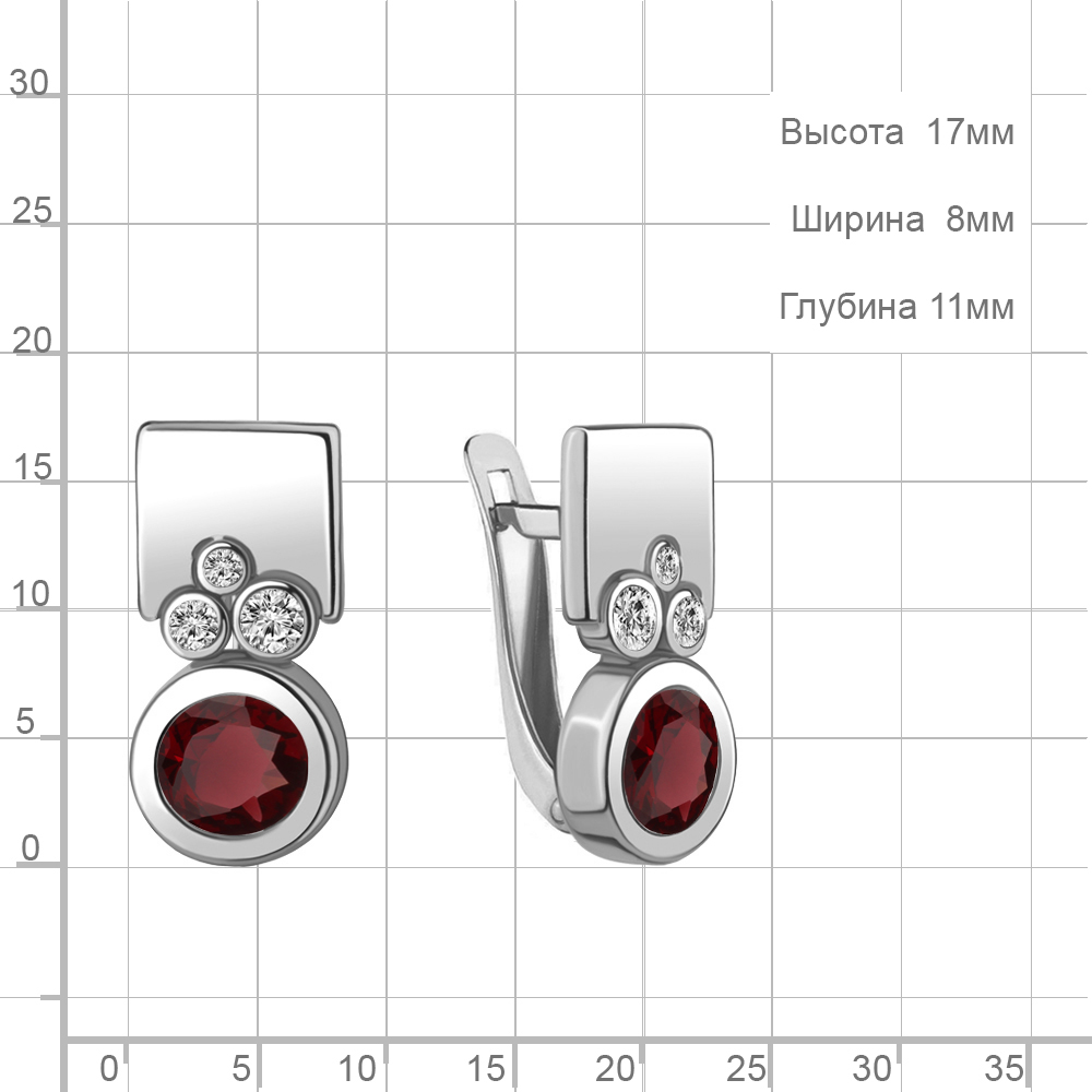4771303А Серьги из Серебра с гранатами, фианитами