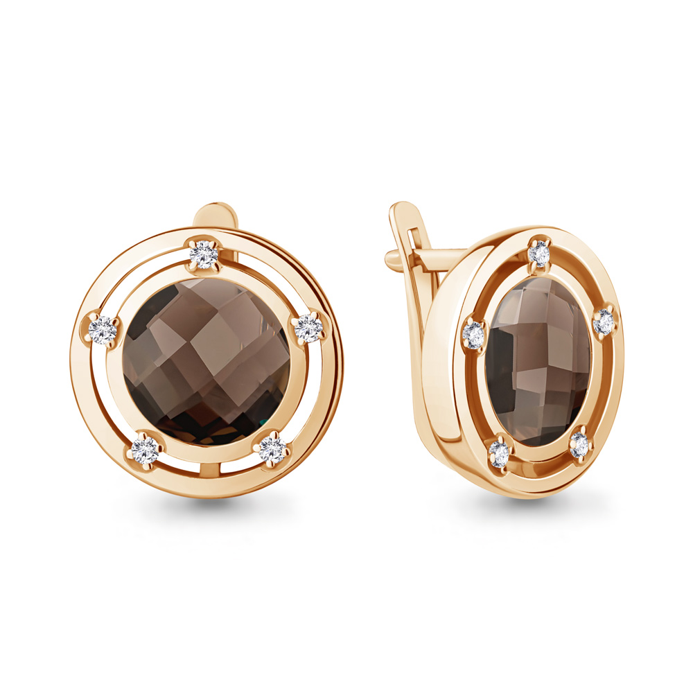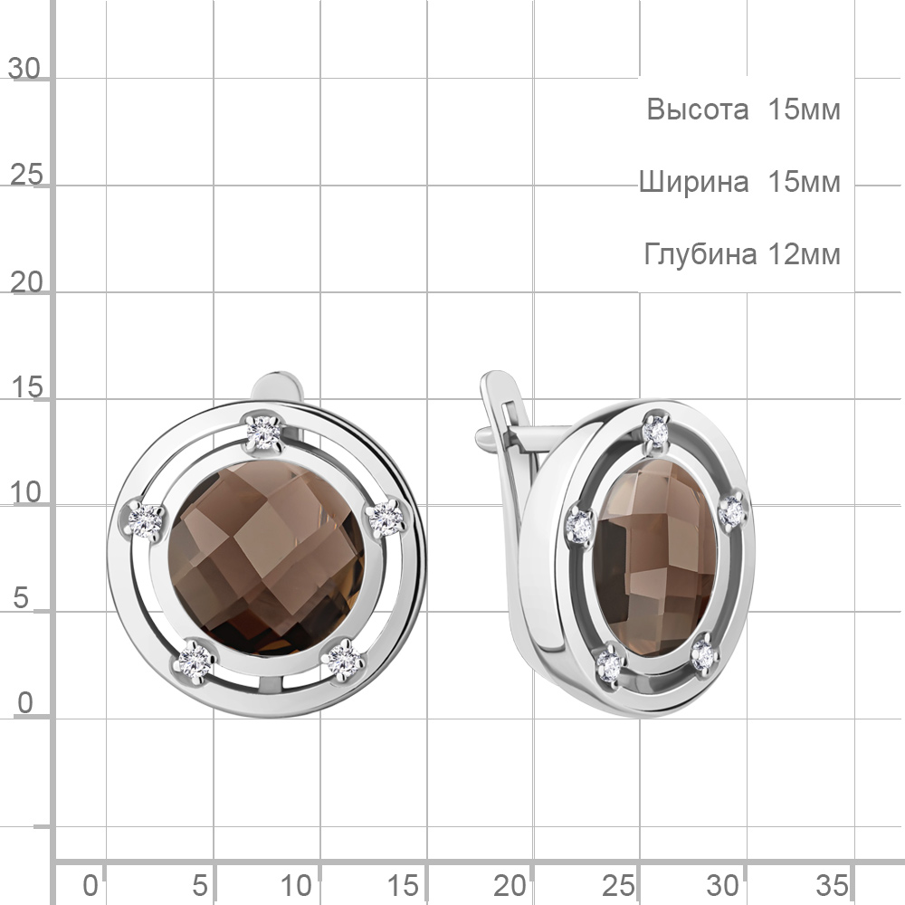 4771601А Серьги из Серебра с кварцами дымчатыми, фианитами