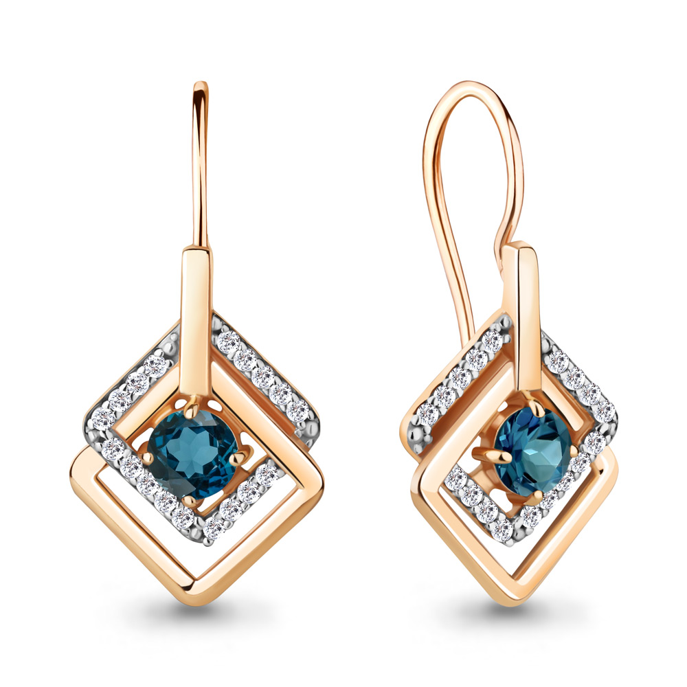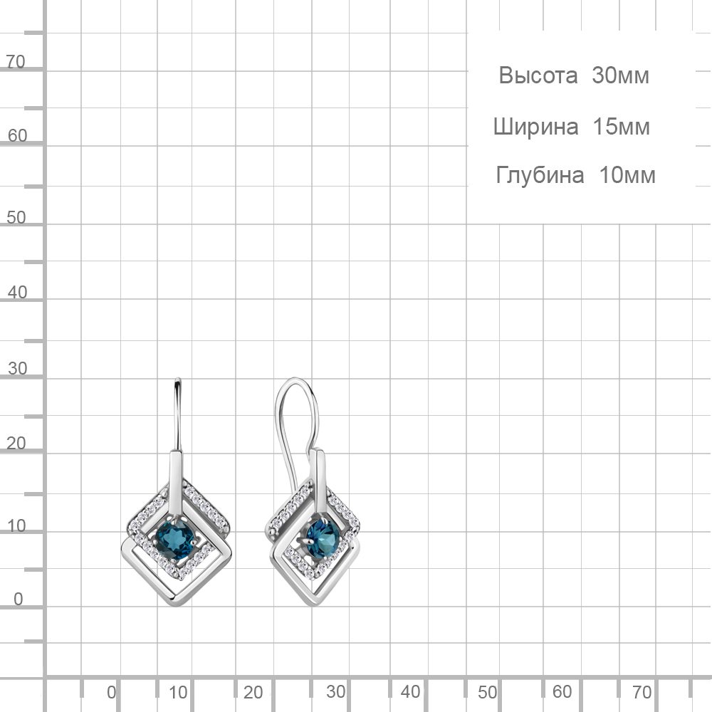 4773908А Серьги из Серебра с топазами лондон блю, фианитами