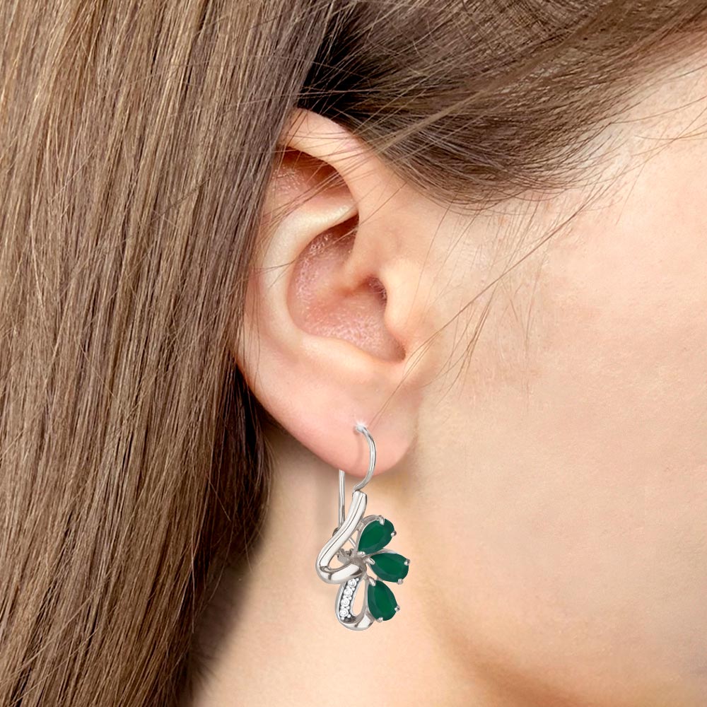 4774609А Серьги из Серебра с агатами, фианитами