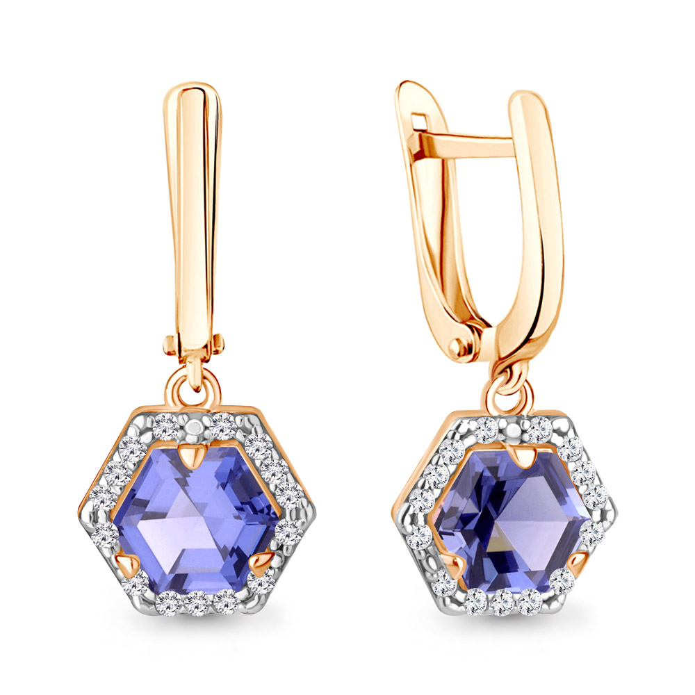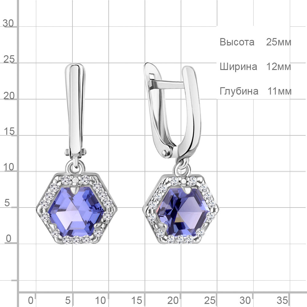 47752603А Серьги из Серебра с нанотанзанитами иск., фианитами