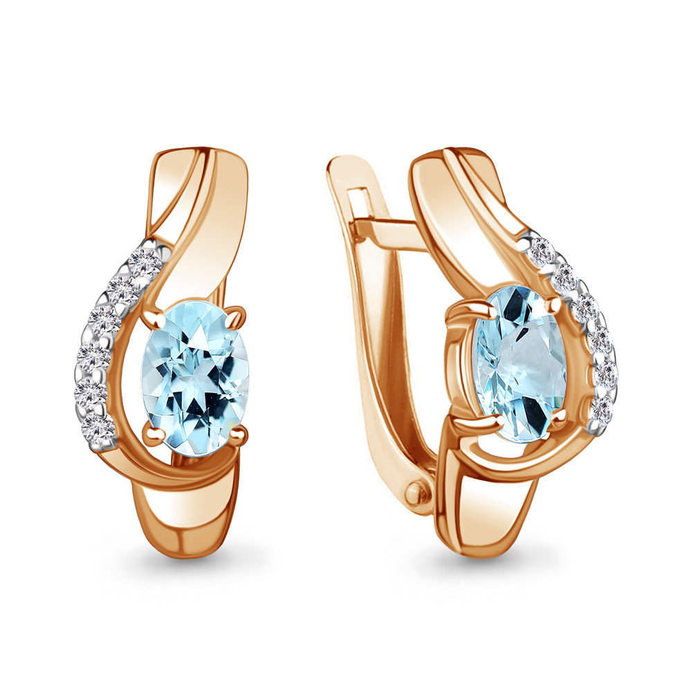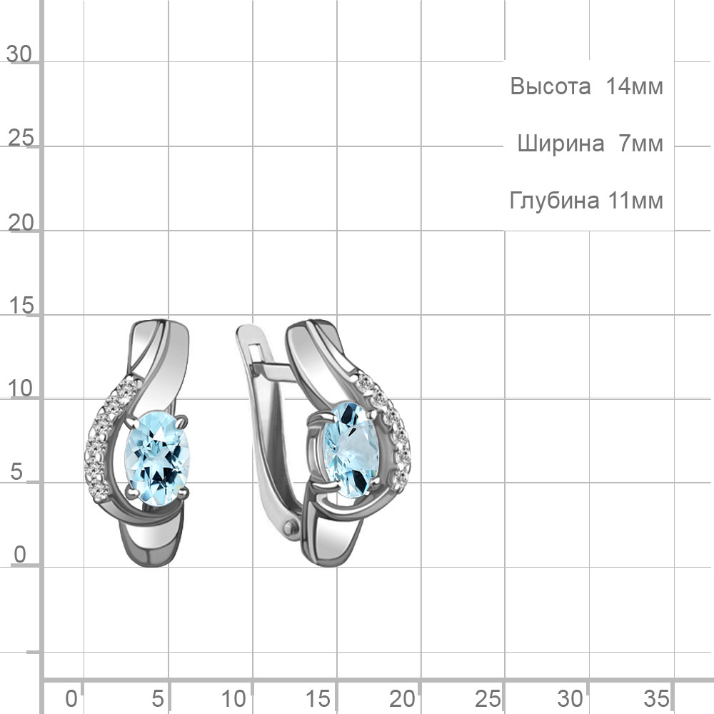 4780002А Серьги из Серебра с топазами скай блю, фианитами