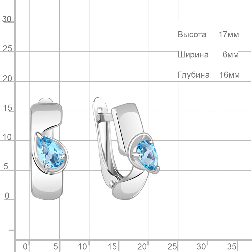 4780505 Серьги из Серебра с топазами свисс блю