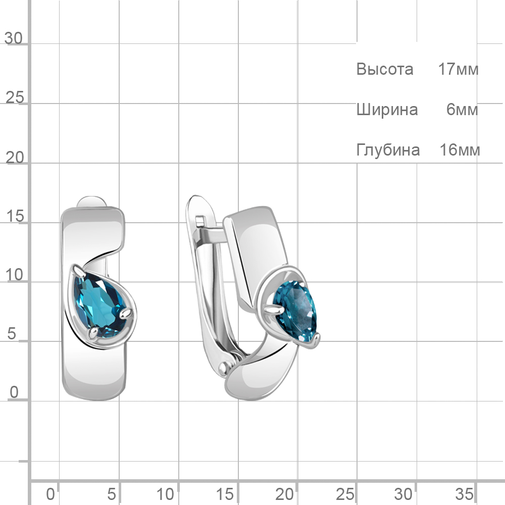 4780508 Серьги из Серебра с топазами лондон блю