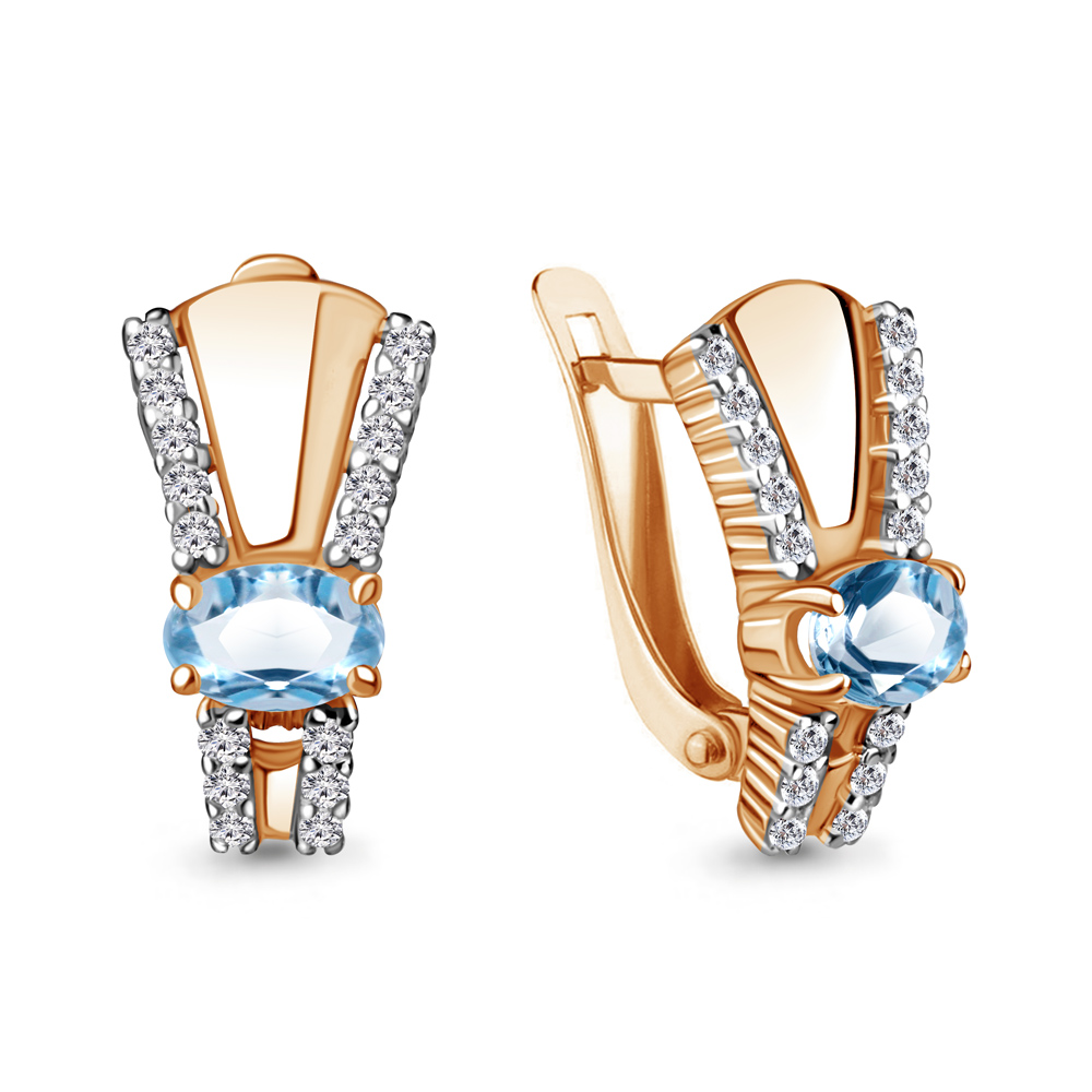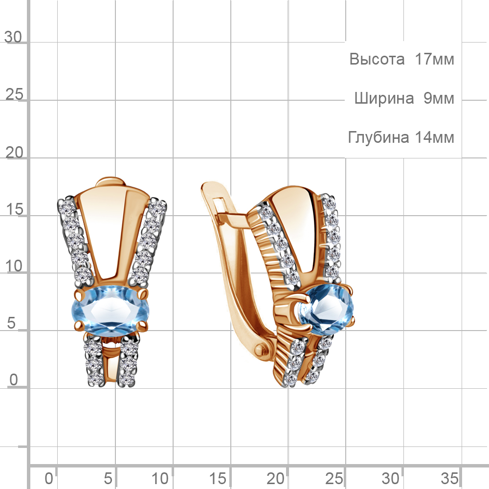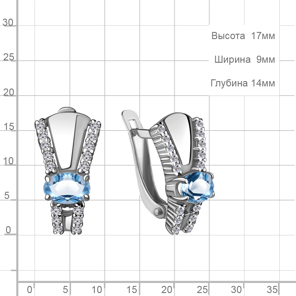 4780605А Серьги из Серебра с топазами свисс блю, фианитами