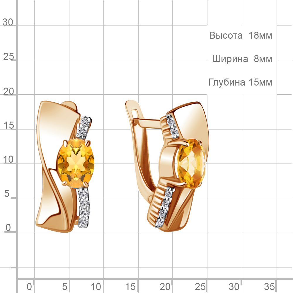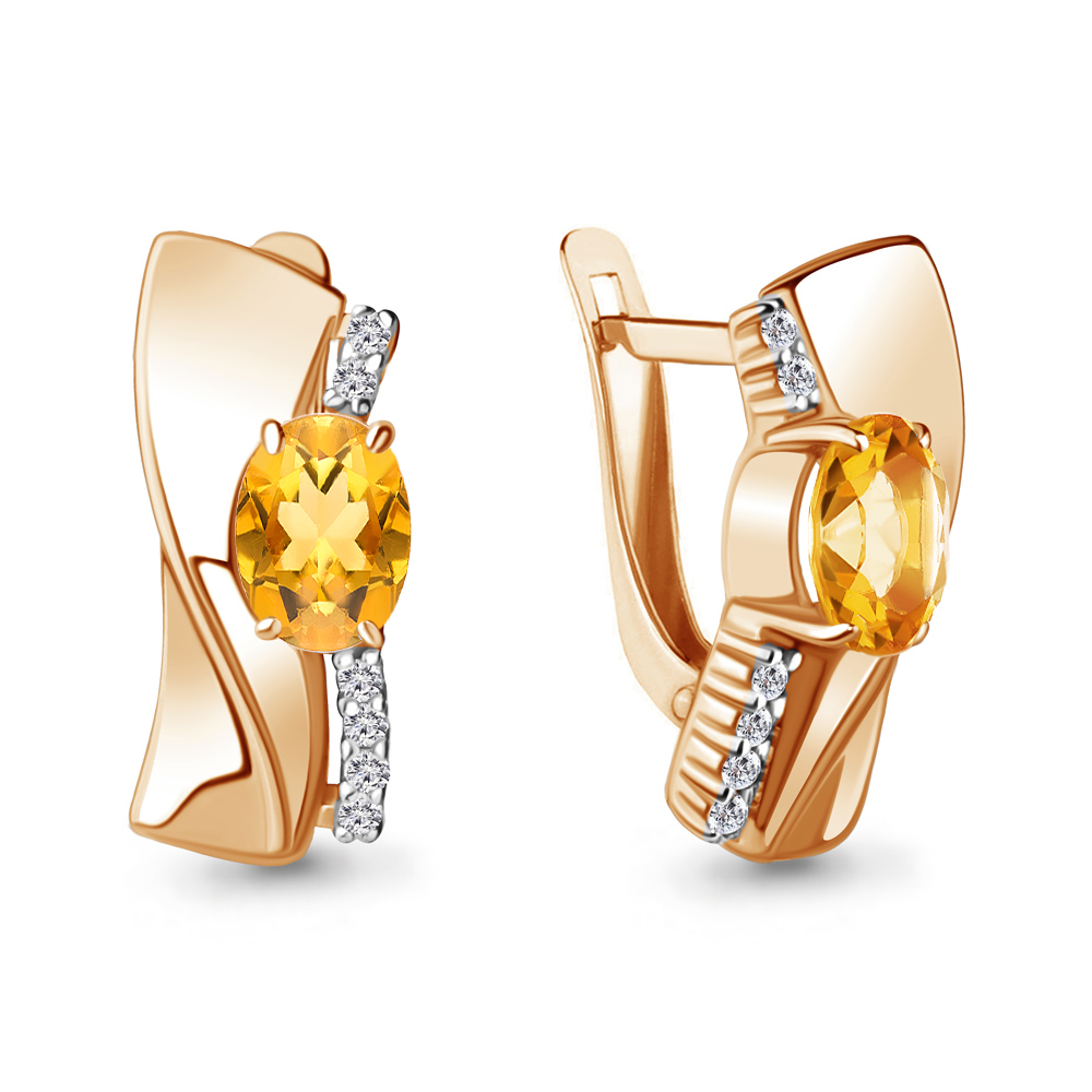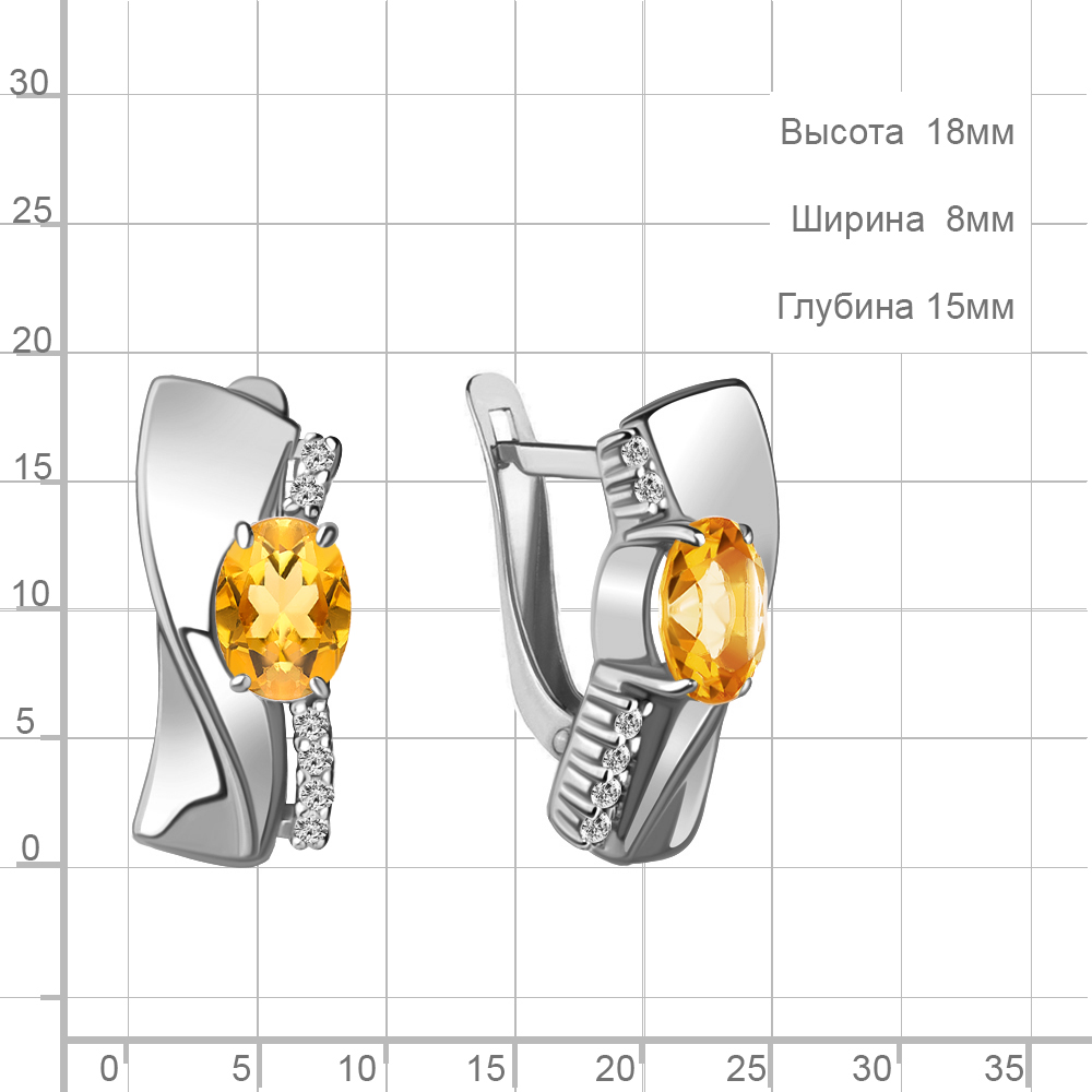 4780706А Серьги из Серебра с фианитами, цитринами