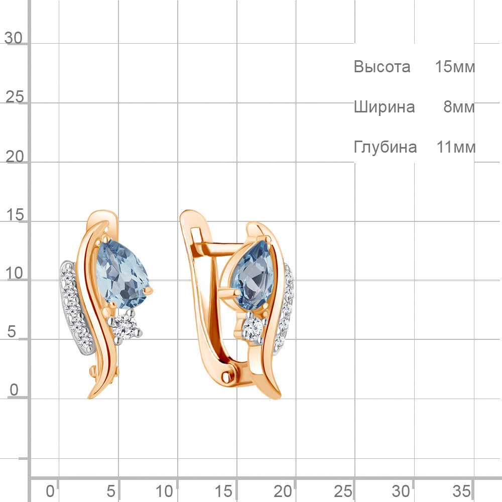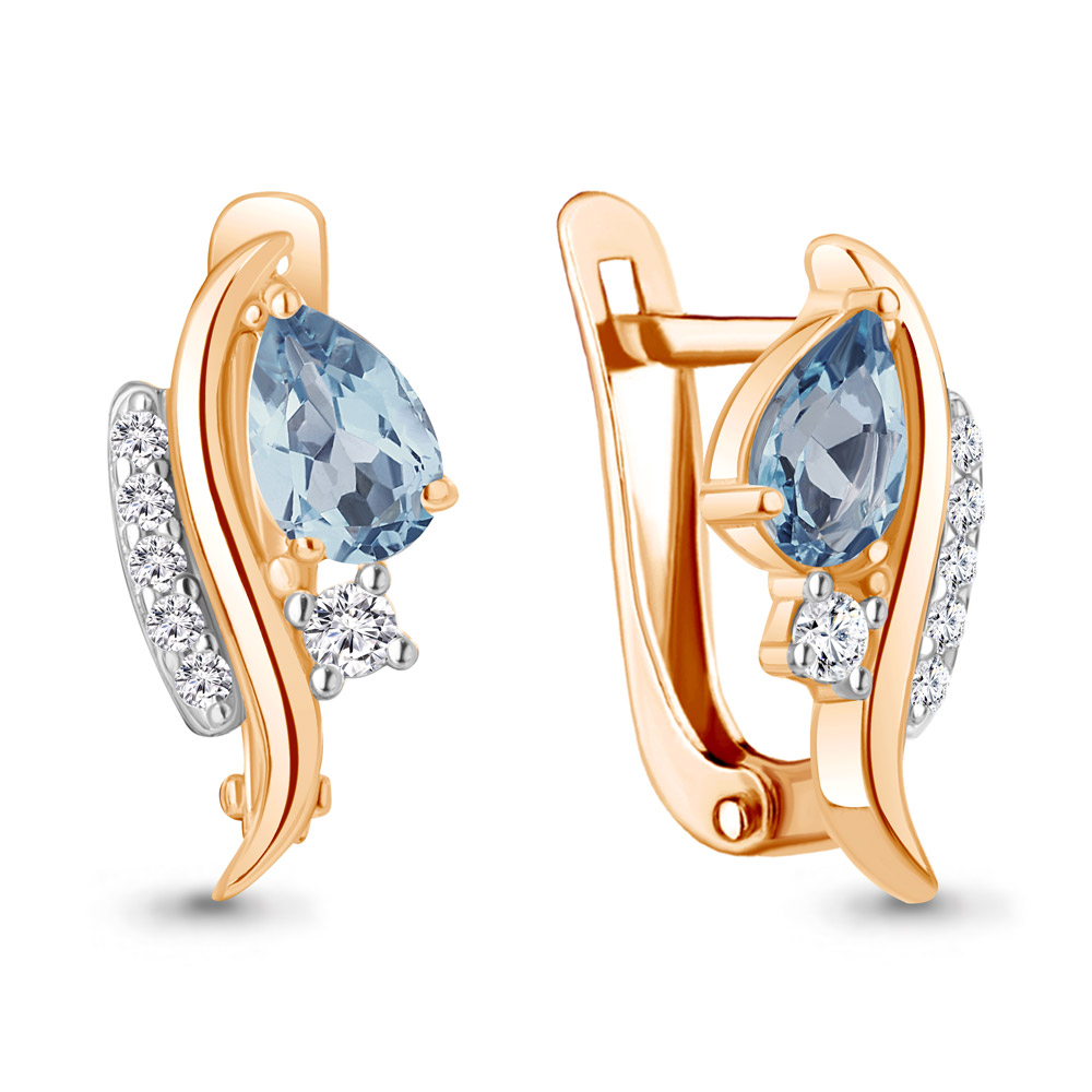 4791005А Серьги из Серебра с топазами свисс блю, фианитами