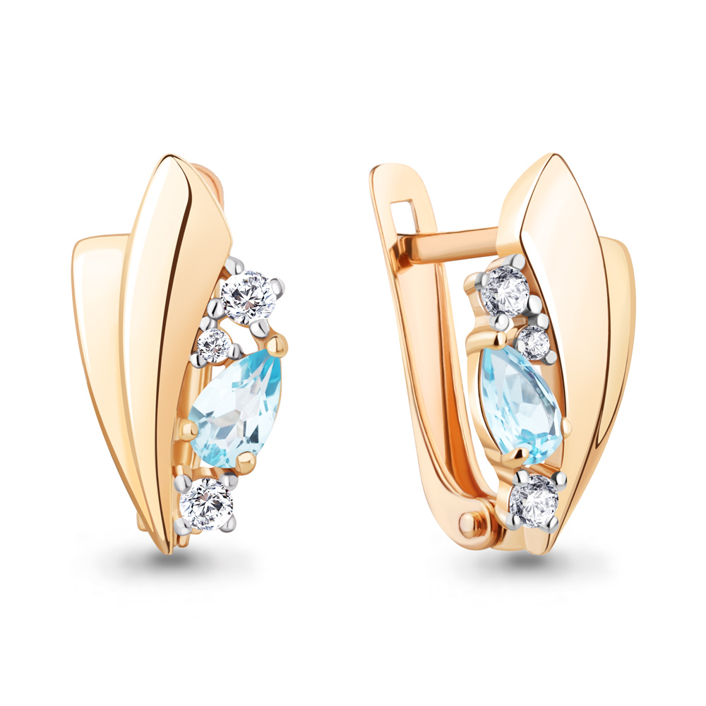 4793902А Серьги из Серебра с топазами скай блю, фианитами