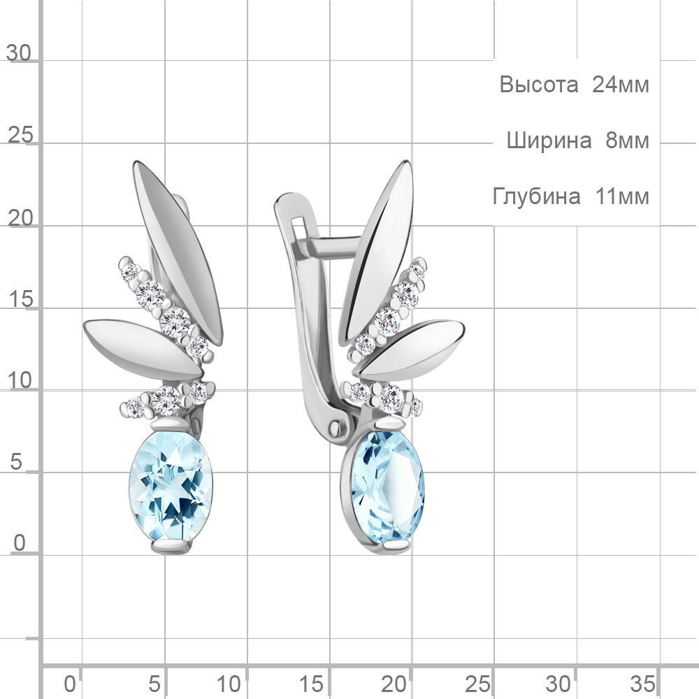 4795102А Серьги из Серебра с топазами скай блю, фианитами