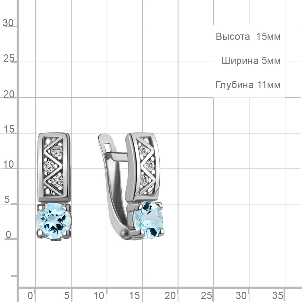 4796902А Серьги из Серебра с топазами скай блю, фианитами
