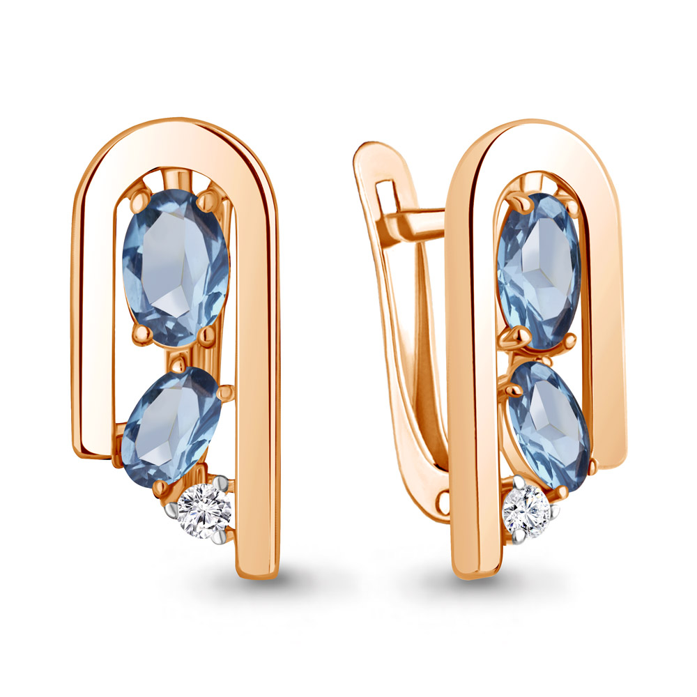 4797905А Серьги из Серебра с топазами свисс блю, фианитами