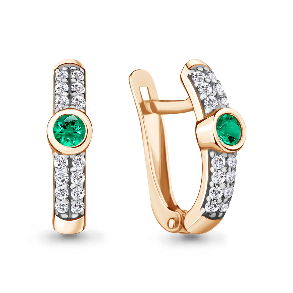 48636АГ Серьги из Серебра с наноизумрудами, фианитами