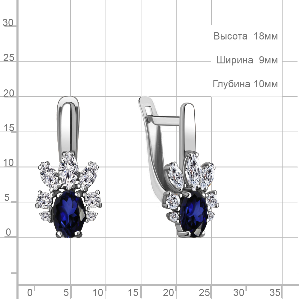 49375АБ Серьги из Серебра с наносапфирами, фианитами из коллекции "Клеопатра"