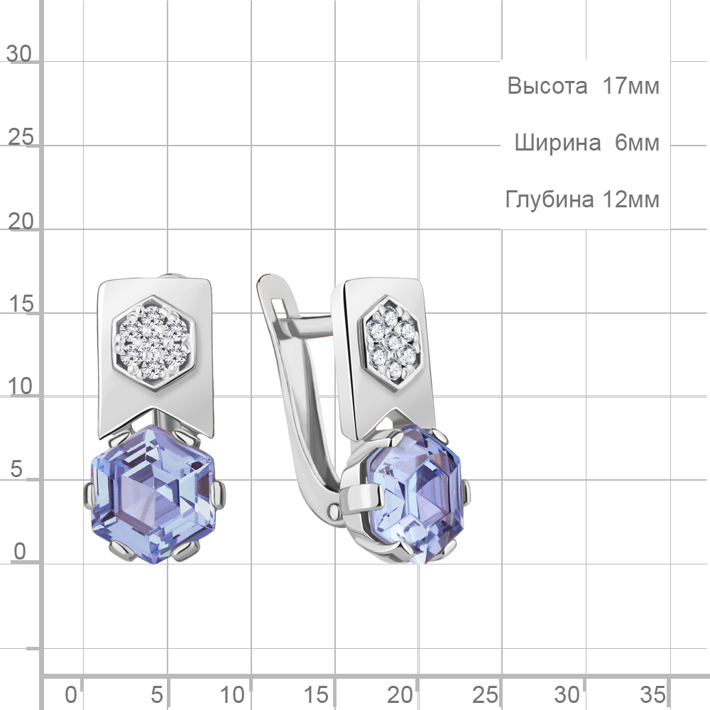 49441603А Серьги из Серебра с нанотанзанитами иск., фианитами