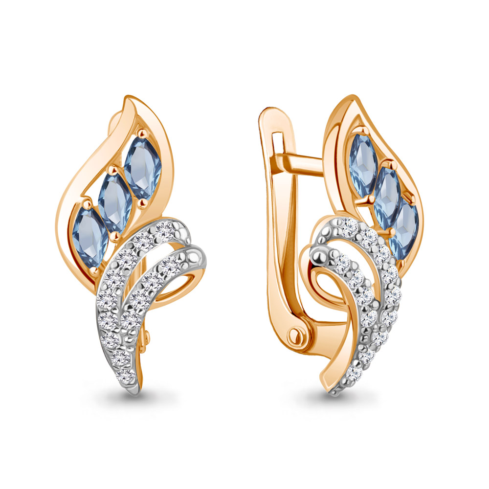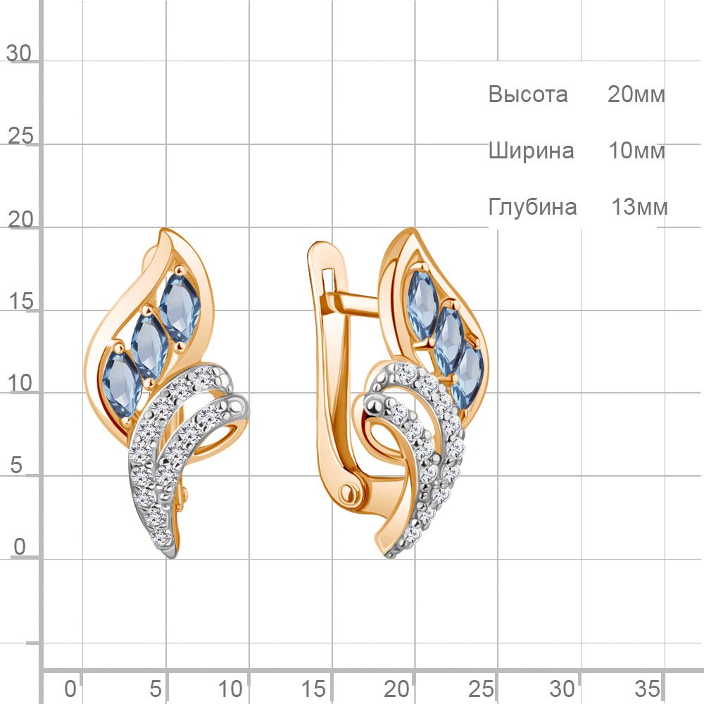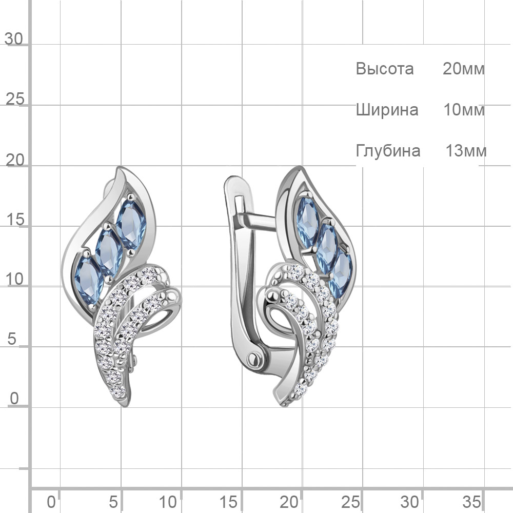 4967505А Серьги из Серебра с топазами свисс блю, фианитами