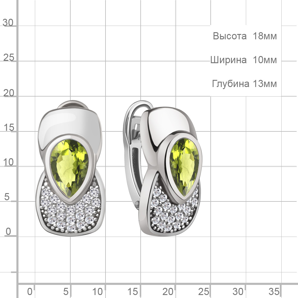 4969307А Серьги из Серебра с фианитами, хризолитами