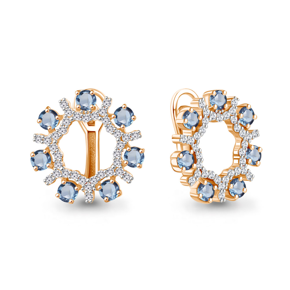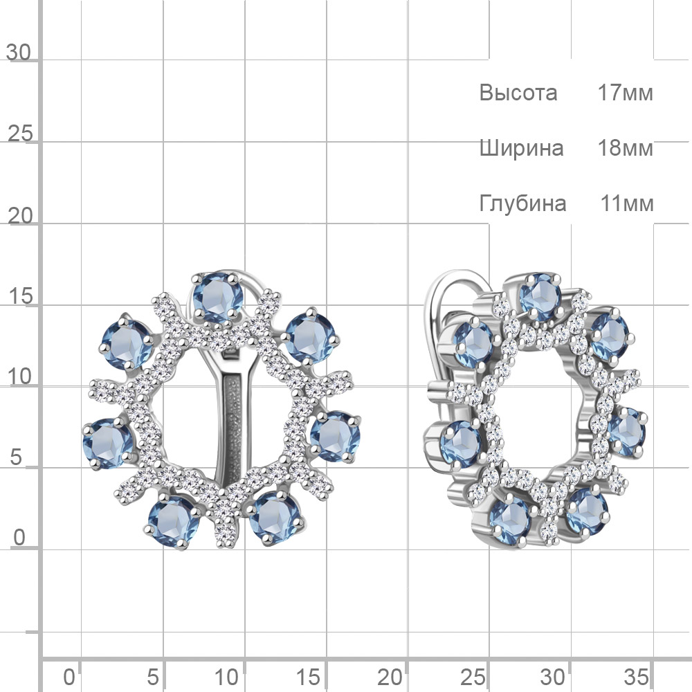 4969505А Серьги из Серебра с топазами свисс блю, фианитами