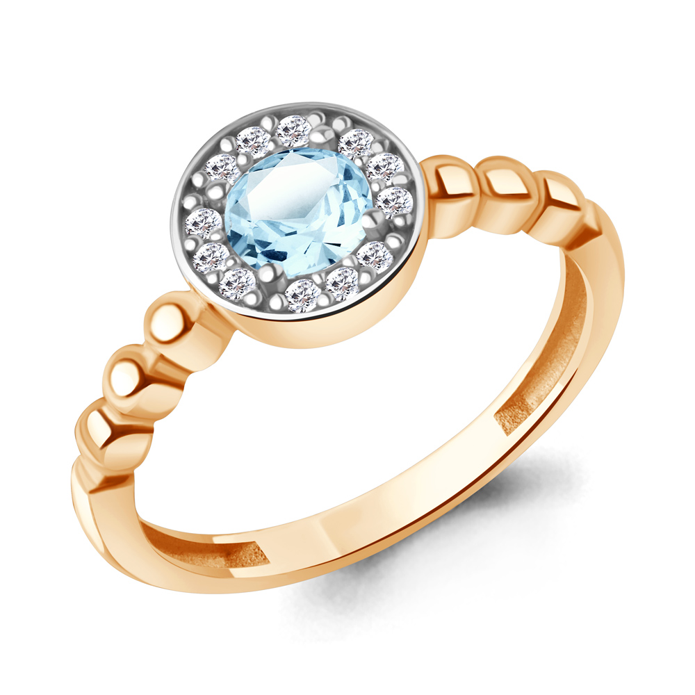 60045102А Кольцо из Серебра с топазом скай блю, фианитами