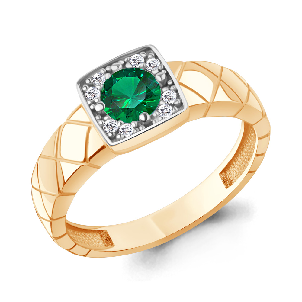 600452АГ Кольцо из Серебра с наноизумрудом, фианитами