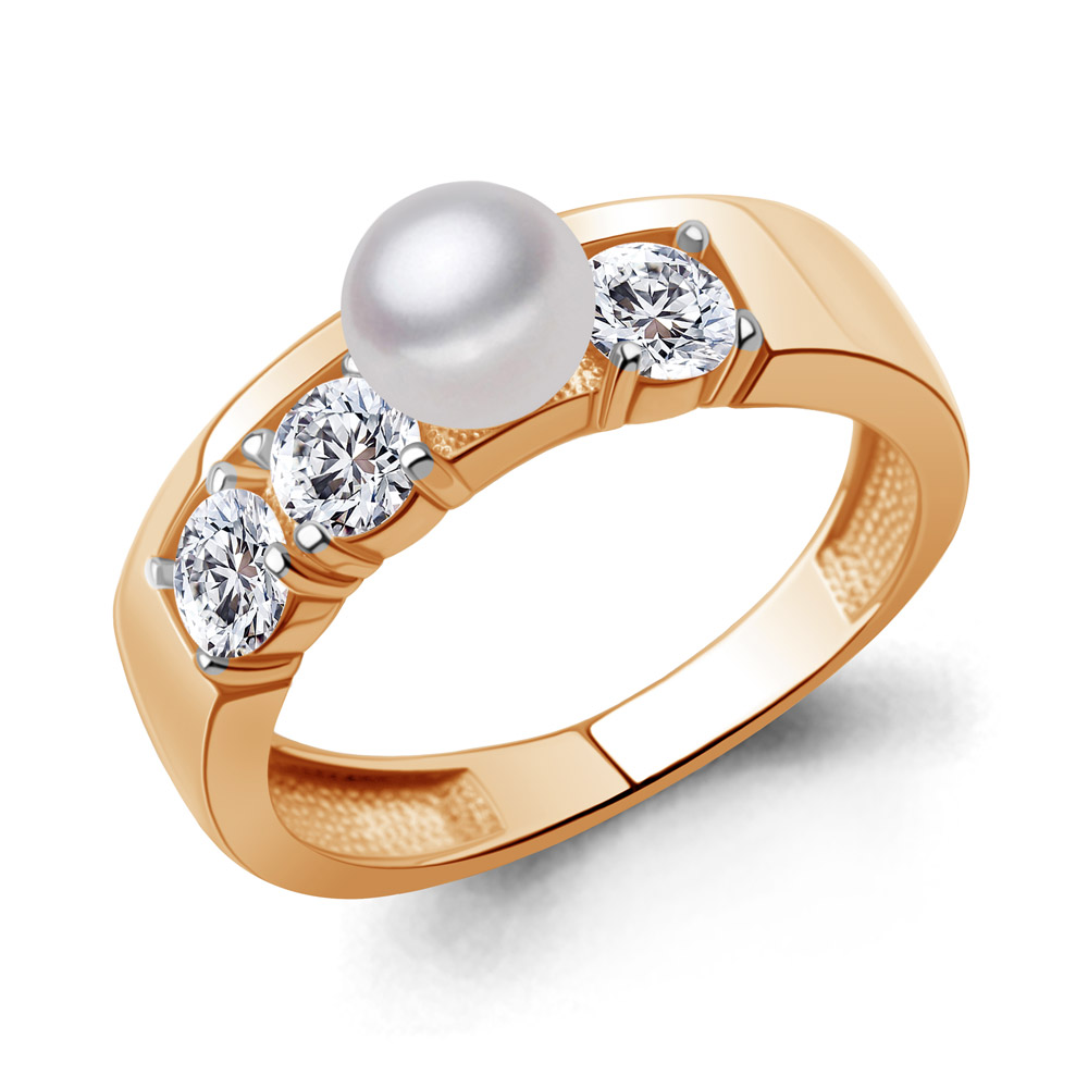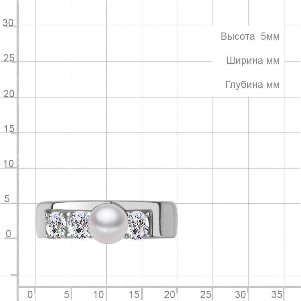 600555А Кольцо из Серебра с имитацией жемчуга, фианитами