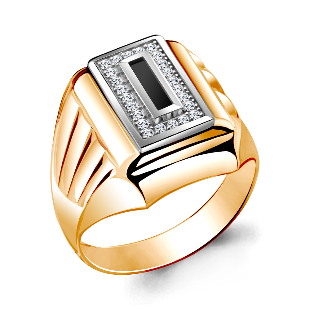 62113Ч Кольцо из Серебра с фианитами, черным фианитом