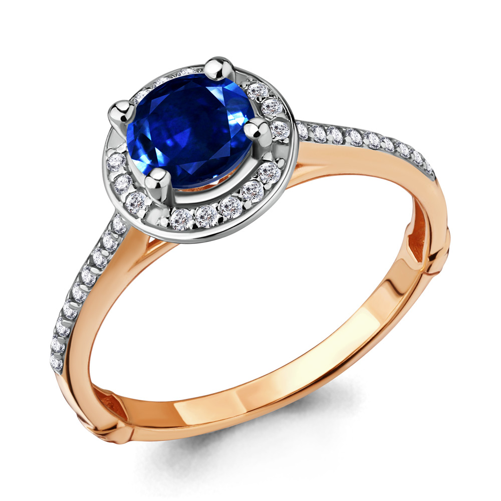 63989Б Кольцо из Серебра с наносапфиром, фианитами из коллекции "Клеопатра"