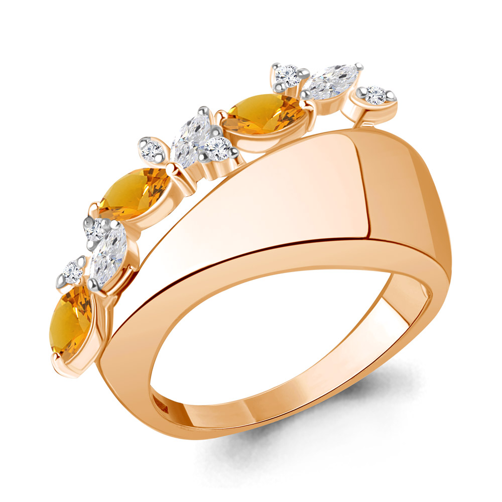 65001006А Кольцо из Серебра с фианитами, цитринами