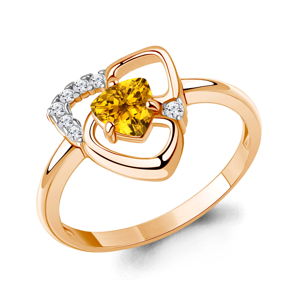 65002806А Кольцо из Серебра с фианитами, цитрином