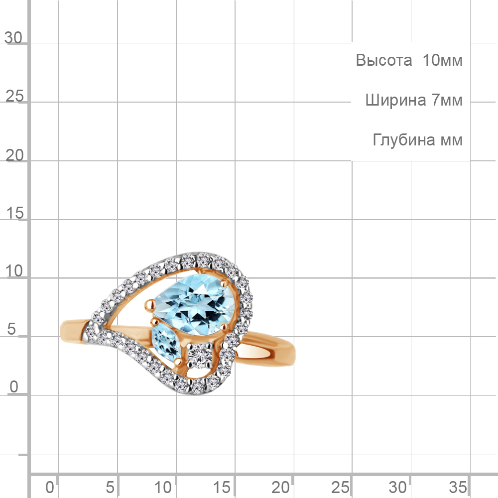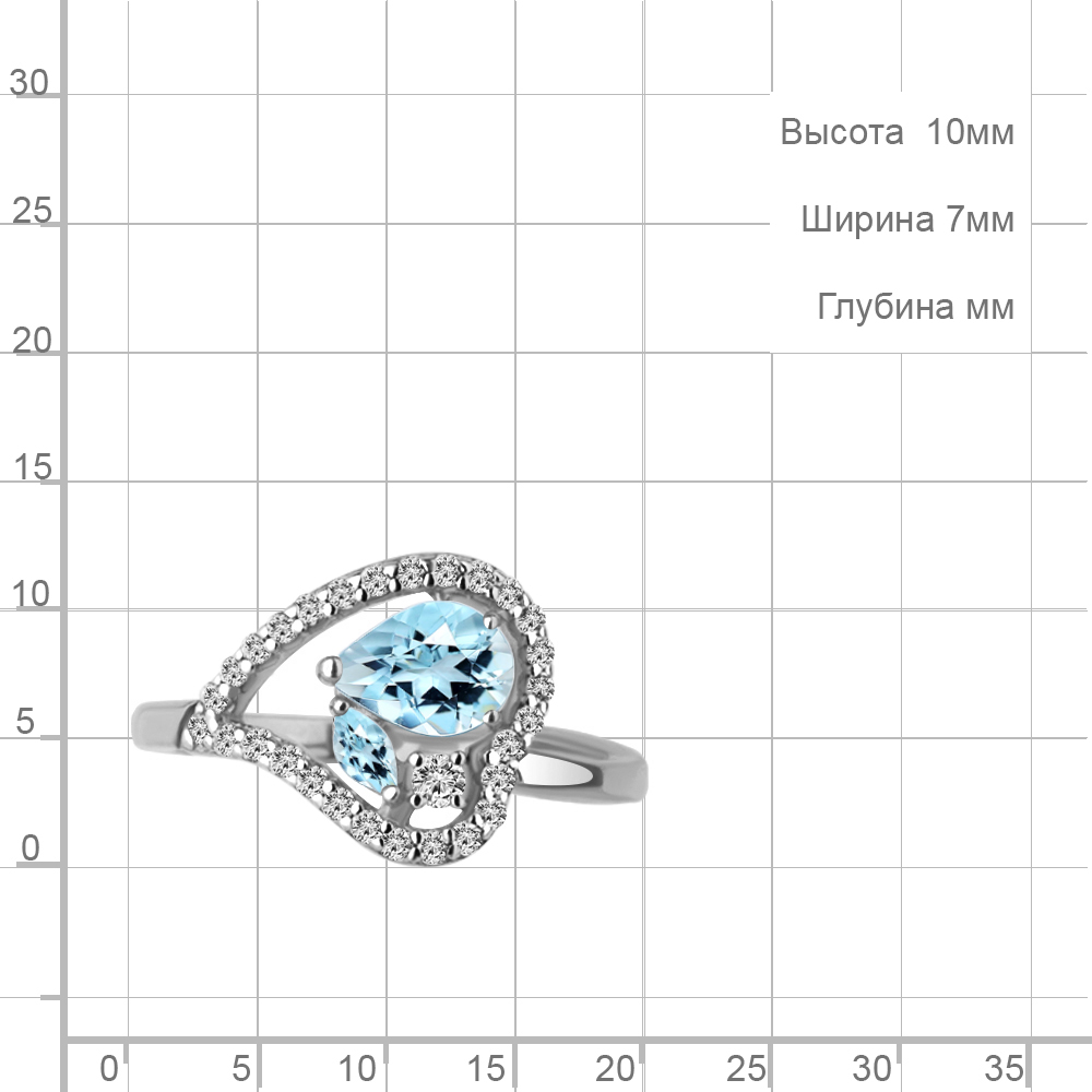 Описание камней 1 Топаз Скай Блю; 1 Топаз Скай Блю; 28 Фианит; 1 Фианит
