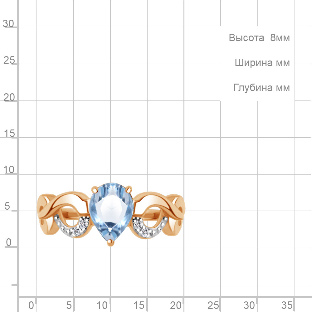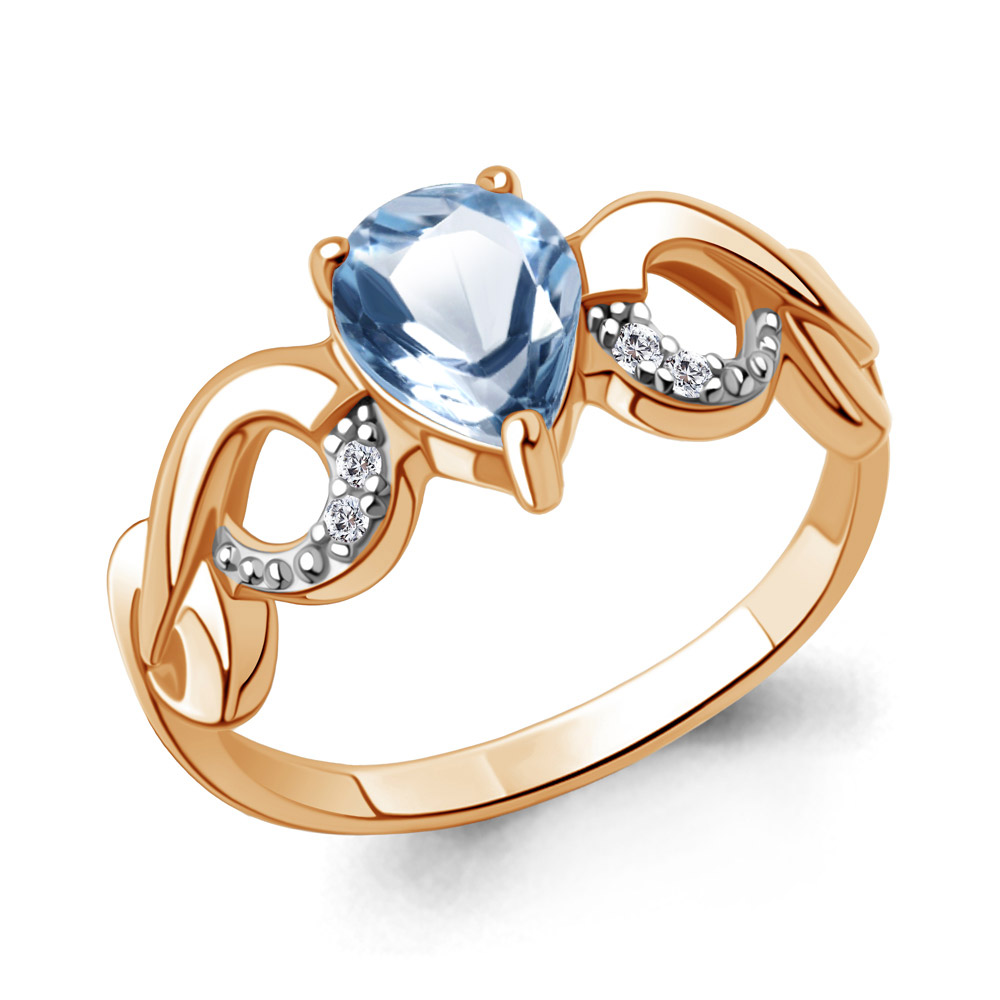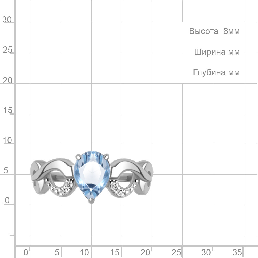 65007305А Кольцо из Серебра с топазом свисс блю, фианитами
