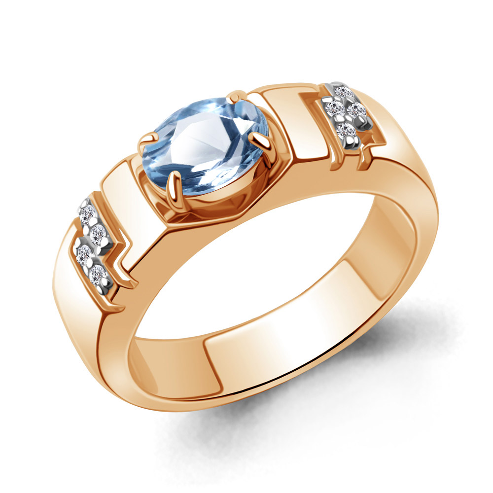 65007505А Кольцо из Серебра с топазом свисс блю, фианитами