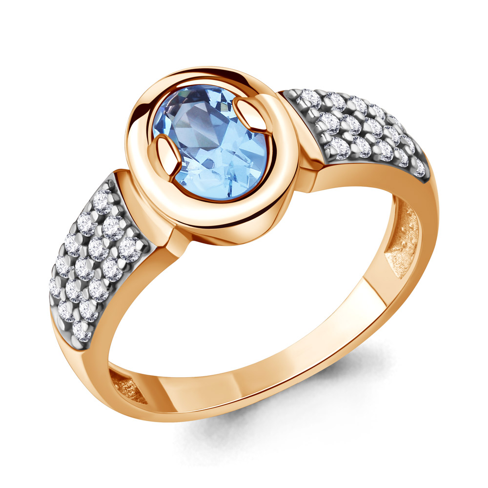 65010305А Кольцо из Серебра с топазом свисс блю, фианитами