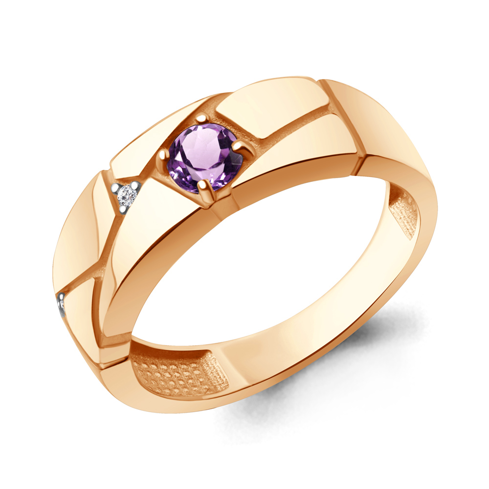 65013904А Кольцо из Серебра с аметистом, фианитами