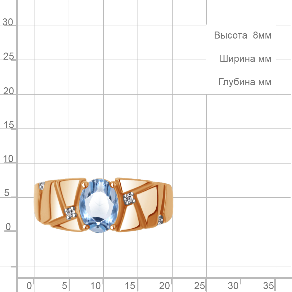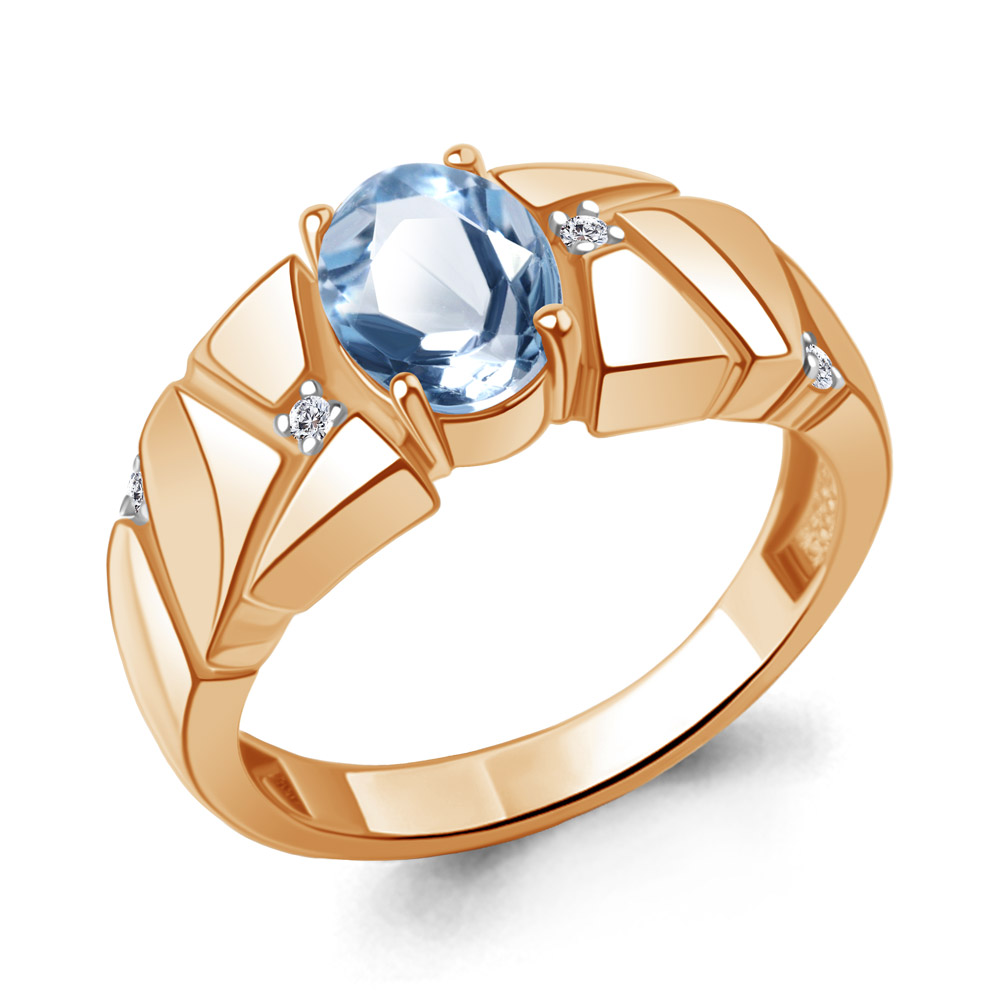 65014105А Кольцо из Серебра с топазом свисс блю, фианитами