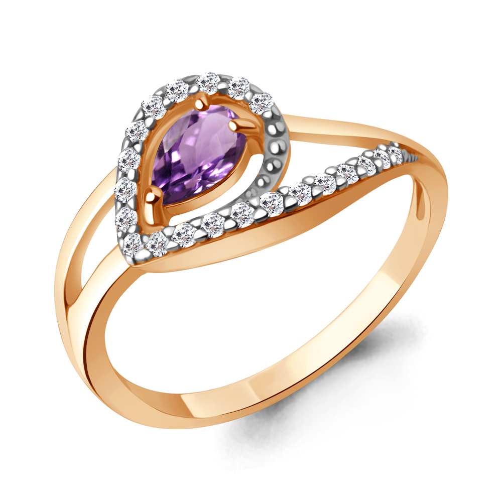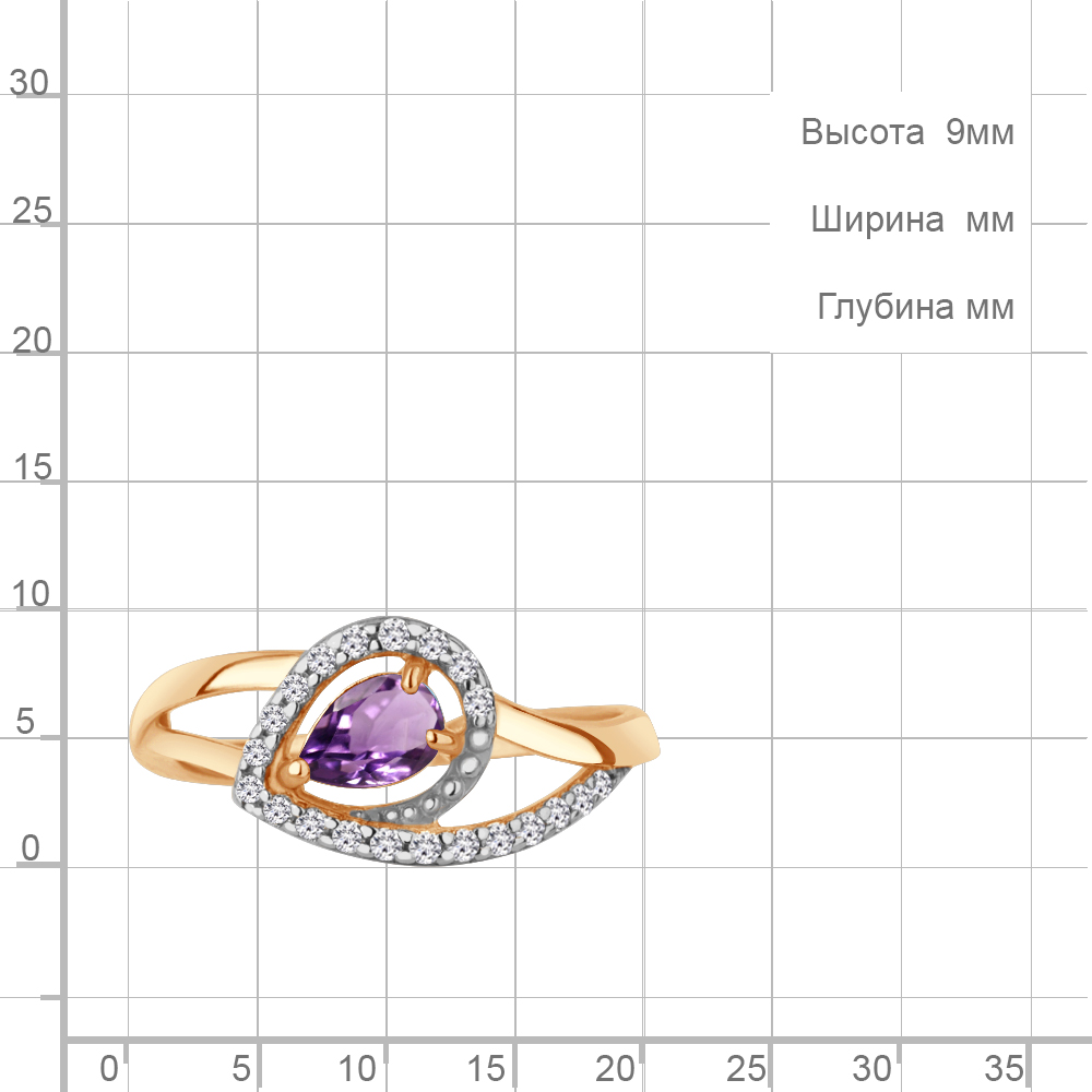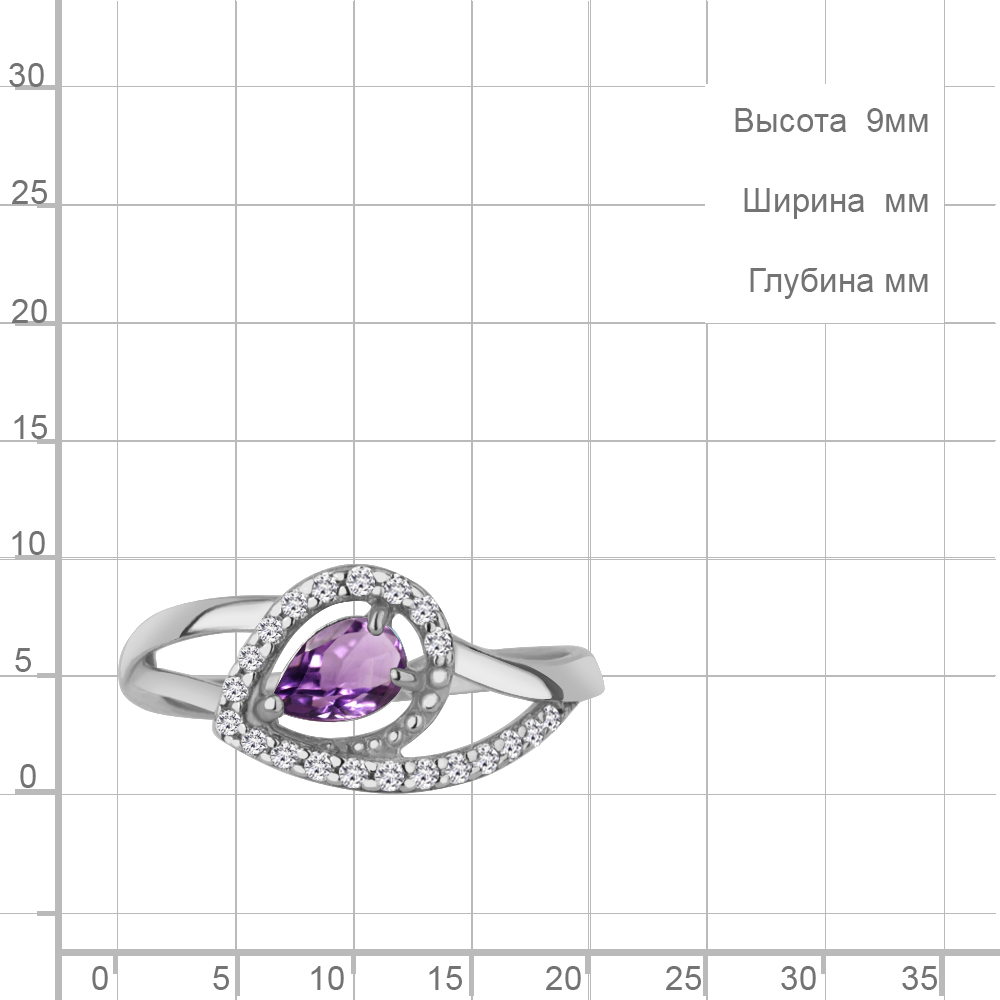 65014504А Кольцо из Серебра с аметистом, фианитами