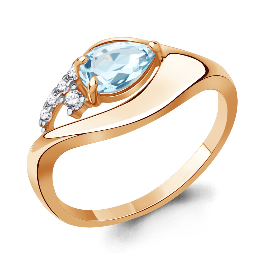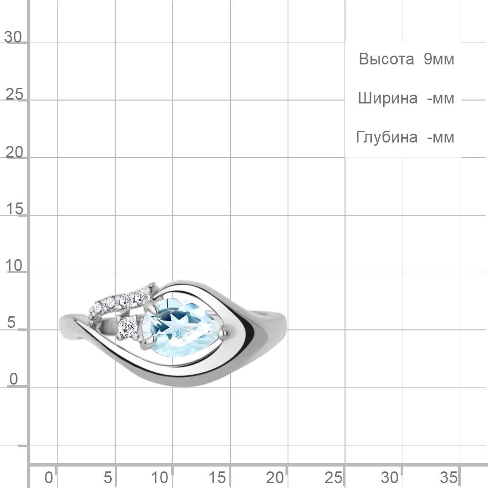 65015002А Кольцо из Серебра с топазом скай блю, фианитами