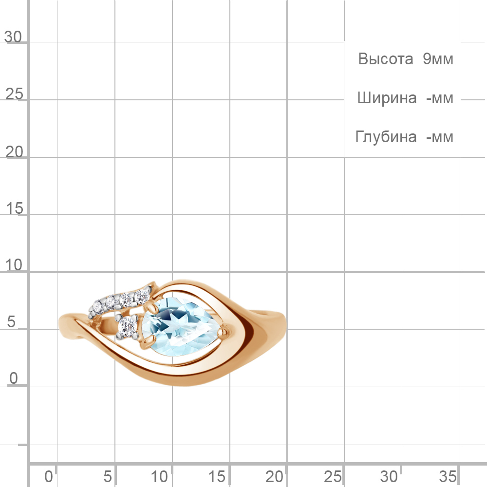 Описание камней 1 Топаз Скай Блю; 4 Фианит; 1 Фианит