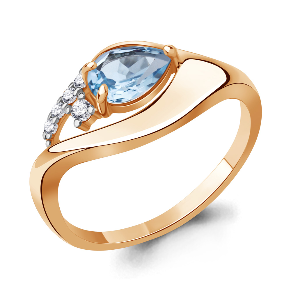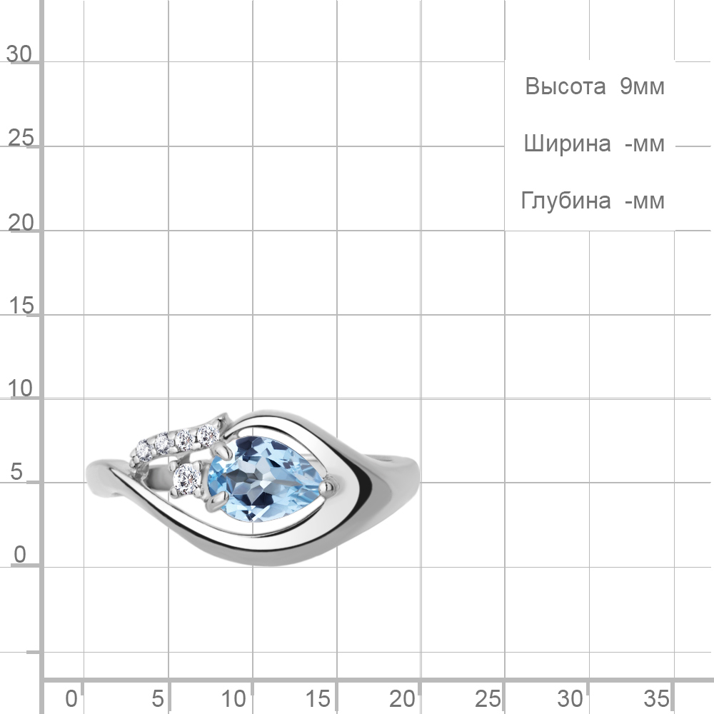 65015005А Кольцо из Серебра с топазом свисс блю, фианитами