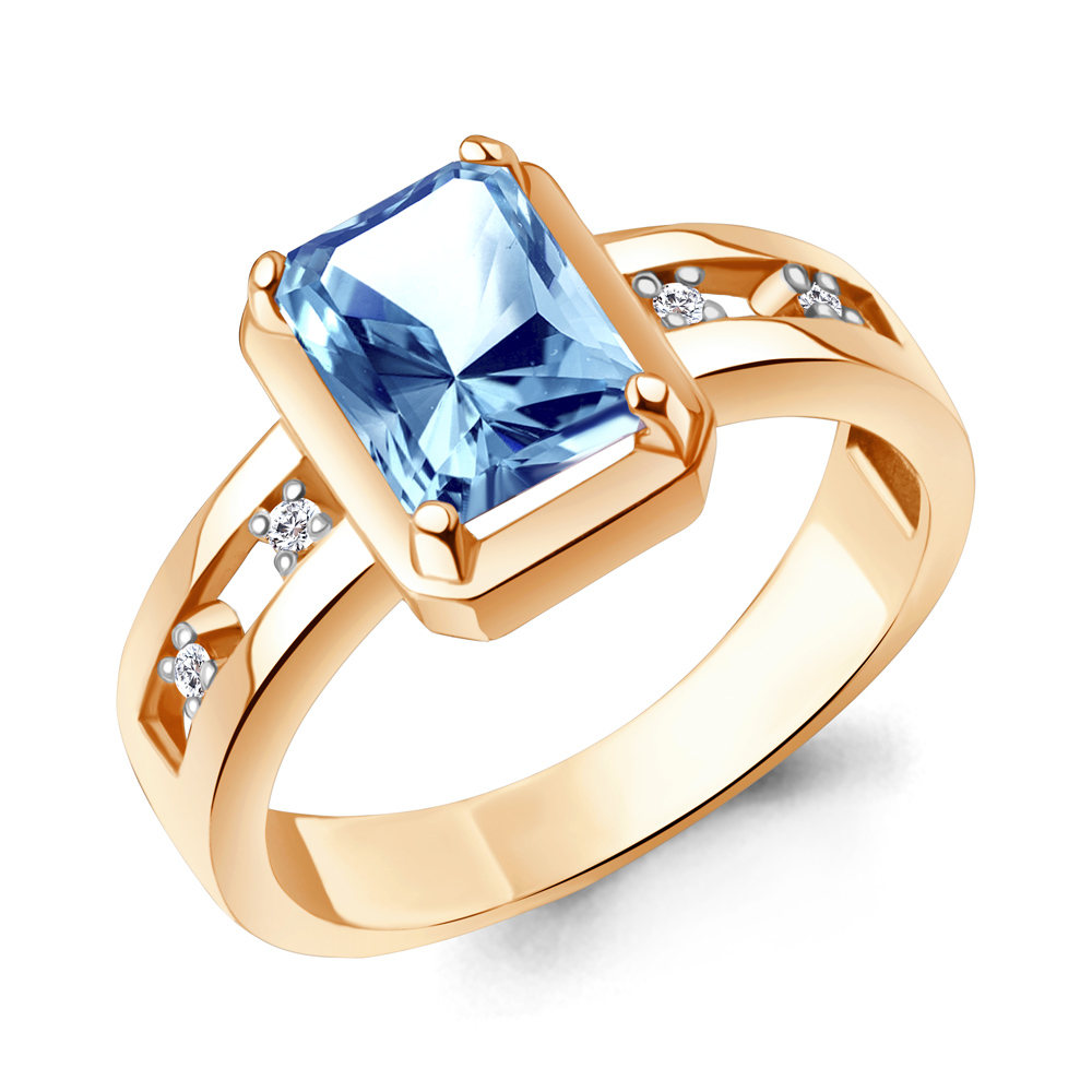 65016805А Кольцо из Серебра с топазом свисс блю, фианитами