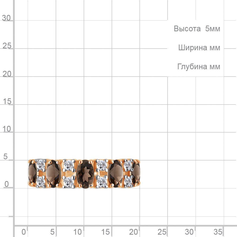 65017201А Кольцо из Серебра с кварцами дымчатыми, фианитами