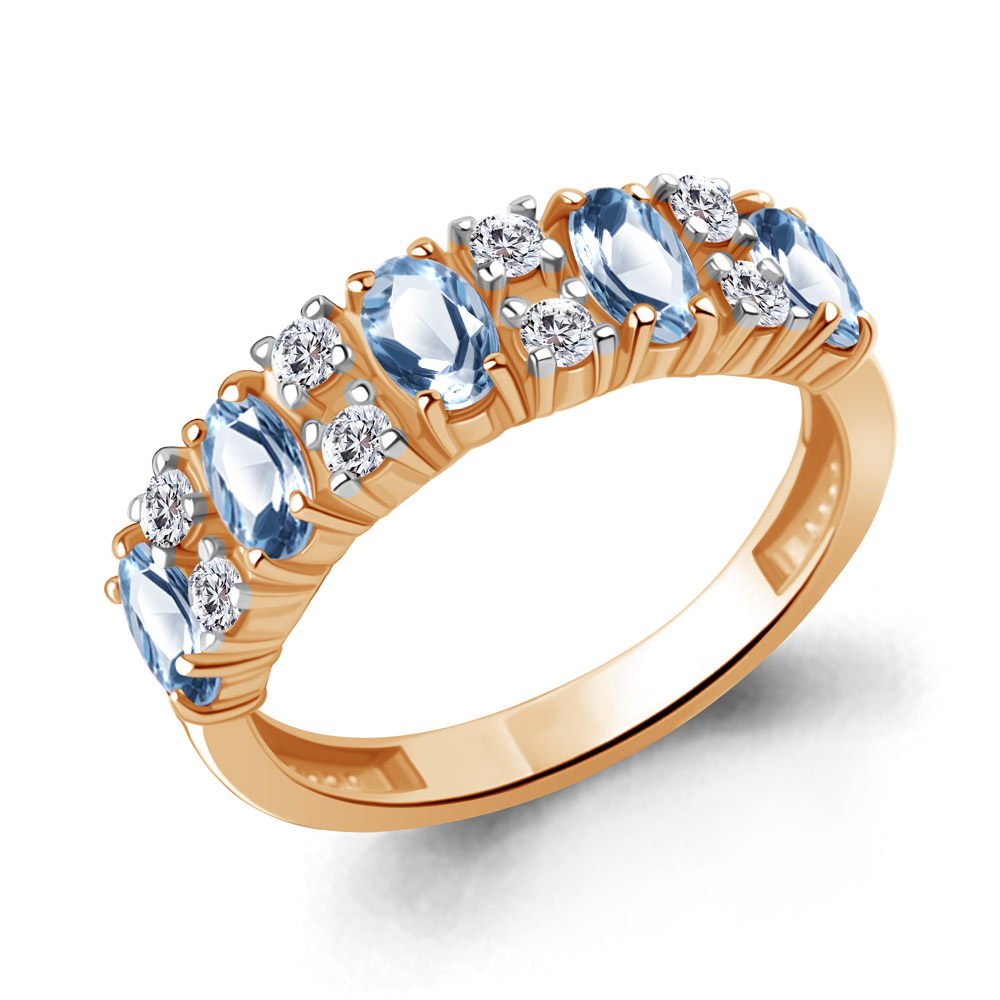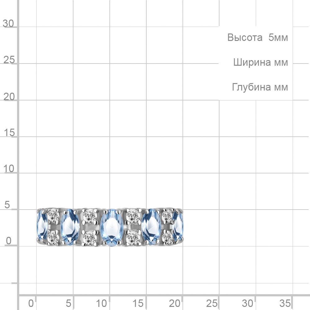 65017205А Кольцо из Серебра с топазами свисс блю, фианитами